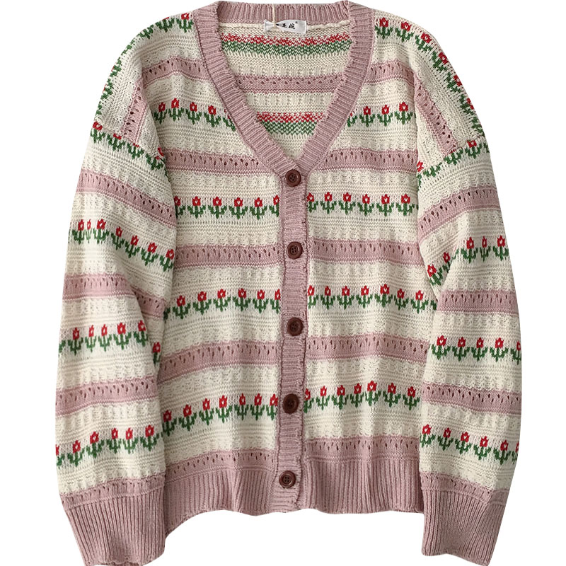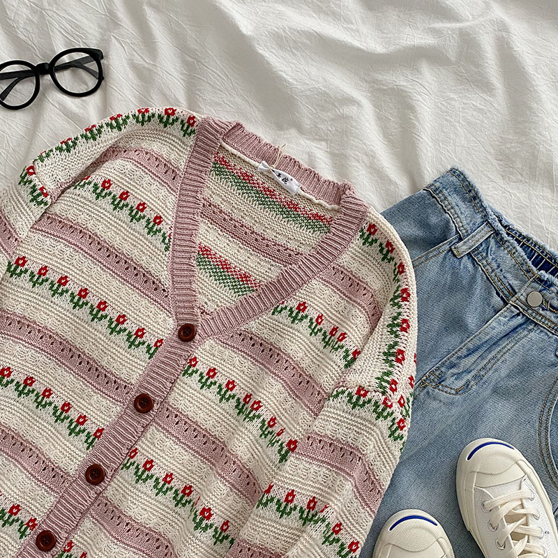 korean style women's fashion ins knitwear knitted slim V-neck cardigan sweater long sleeved