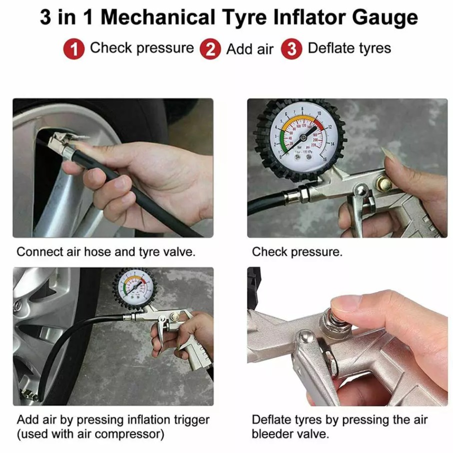 millionhaware - 220 PSI Tyre Pressure Gauge Inflator Air Line Pump Car Truck Meter Tester