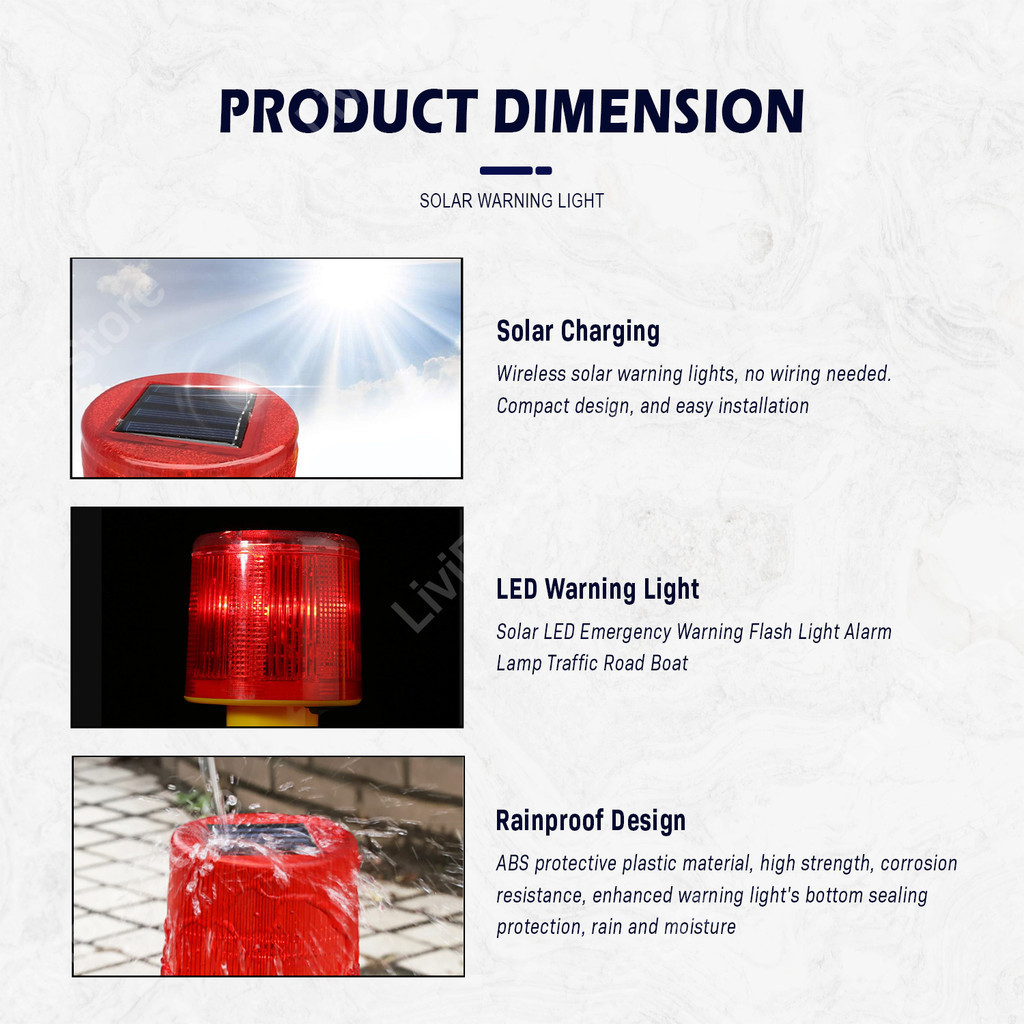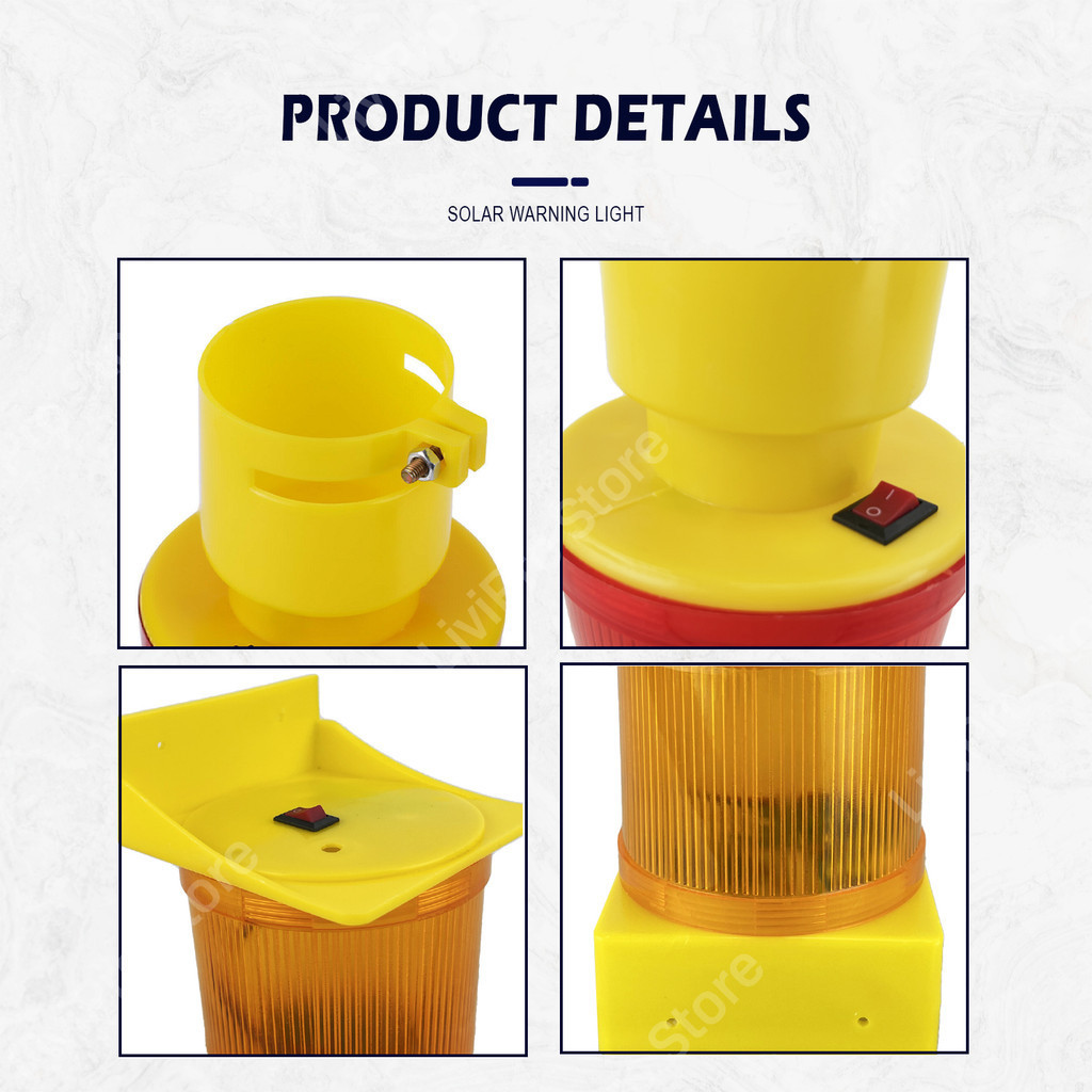 Solar Warning Light LED Emergency Flash Light Traffic Safety Beacon Fix Square Base Caution Lampu Klip Construction