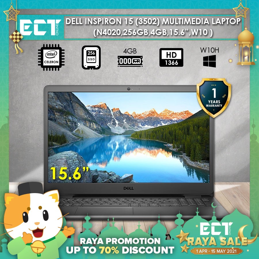 qe5q Dell Inspiron 15 (3502) Multimedia Laptop (N4020 2.80GHz,256GB SSD,4GB,15.6",W10) - Black