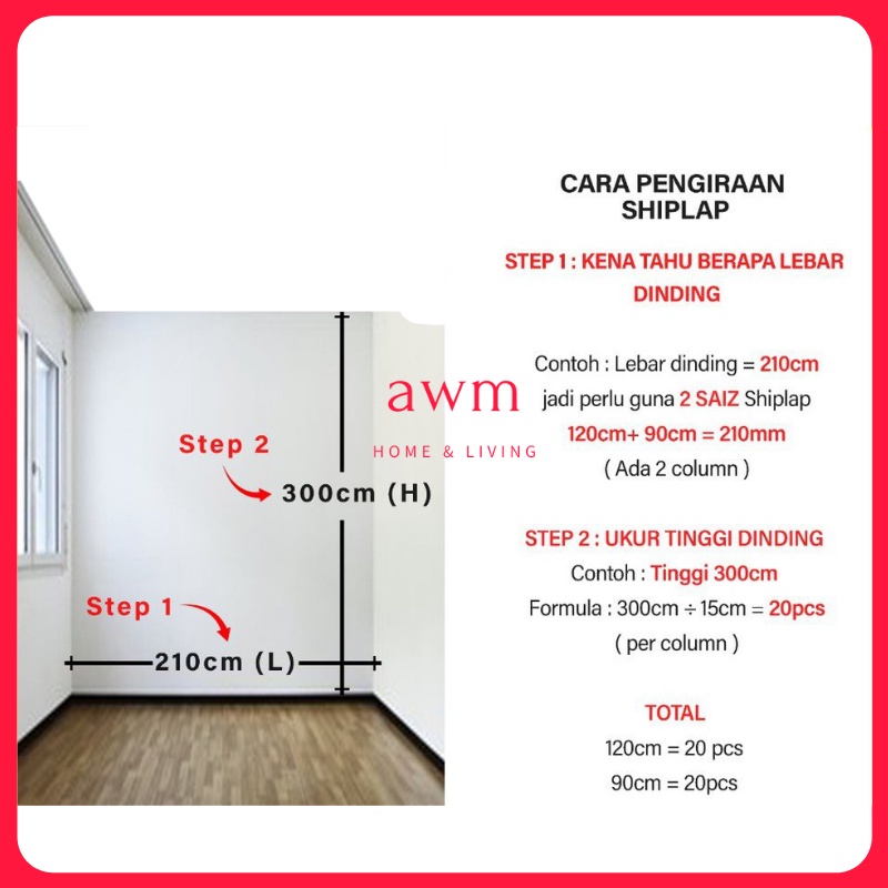 AWM DIY Shiplap Board Wall MDF Kayu Wainscoting Hiasan Dinding Ruang Tamu Kayu dinding hiasan Murah DIY Wall Decoration