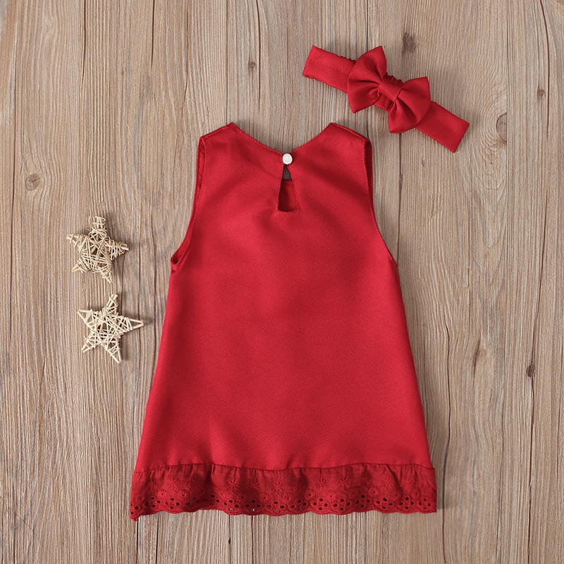 Baju Newborn Girl Baby Dress Sleeveless Casual Maxi Bow Dress +Headband Set Outfit Fashion Lace baju kurung newborn girl