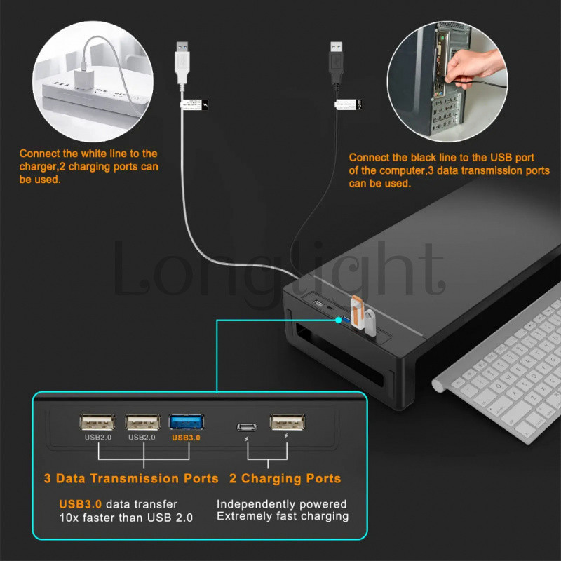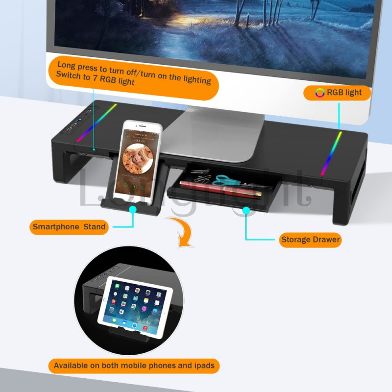 Desktop Monitor Stand Riser with Drawer,Laptop Stand Riser and Computer for Desk with USB 3.0 Data Port and Type-C Charging