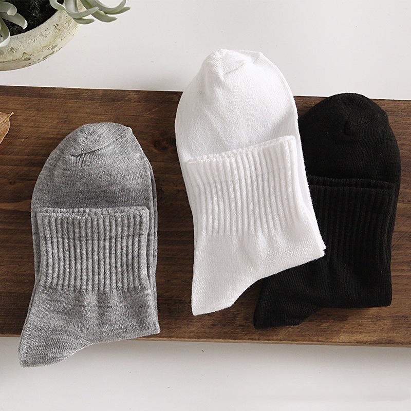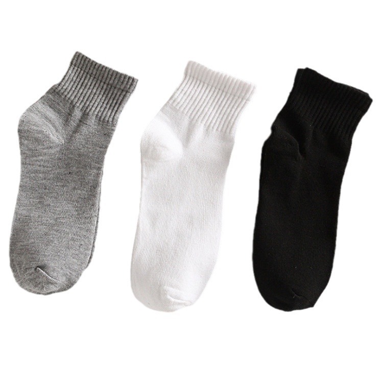 D218 Men's Black White Solid Color Mid-Tube Socks Daily Casual Breathable Sports Socks Boat Socks