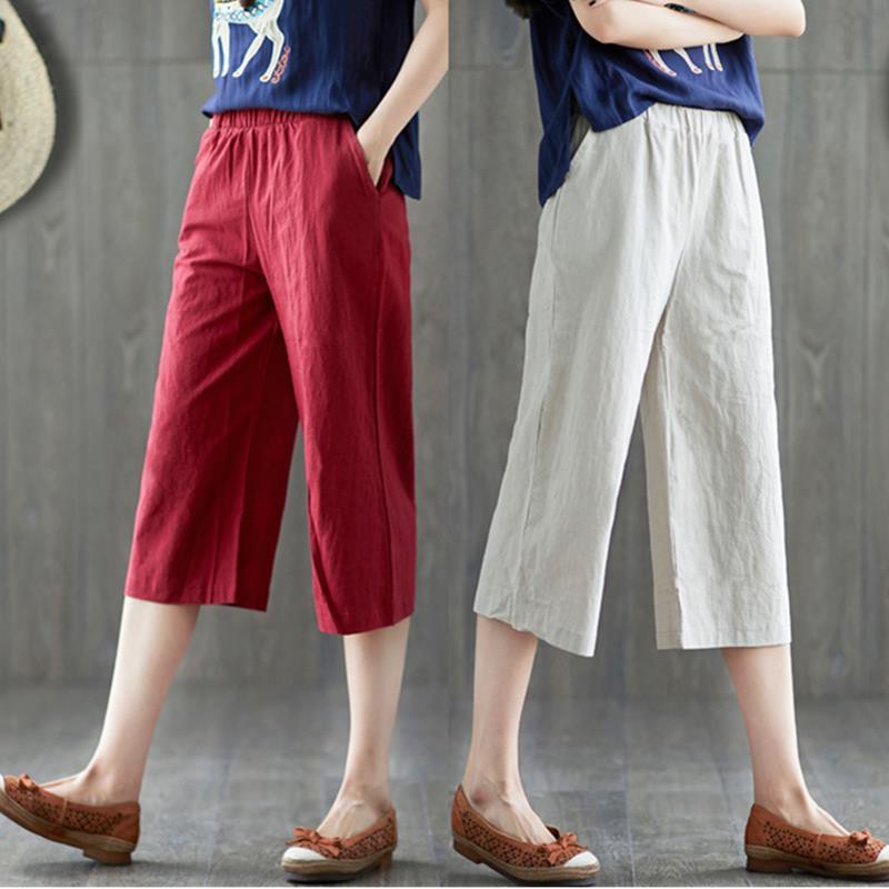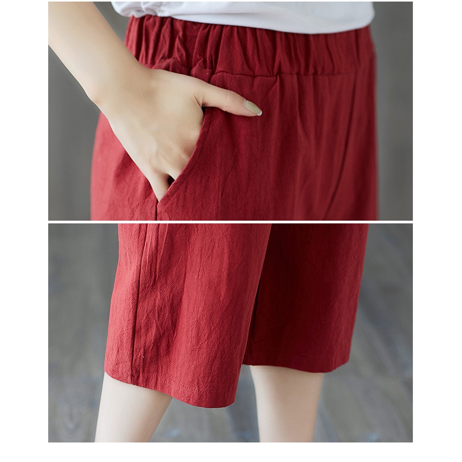 Shorts women knee length Homwear Cotton Casual Loose Wide Leg Straight Ladies Comfy BeachSummer Home Wear Short Pant Solid Color Plus Size White Black Maroon Dark Big Size
