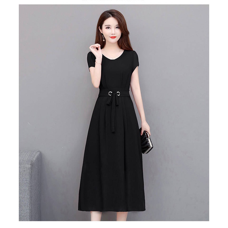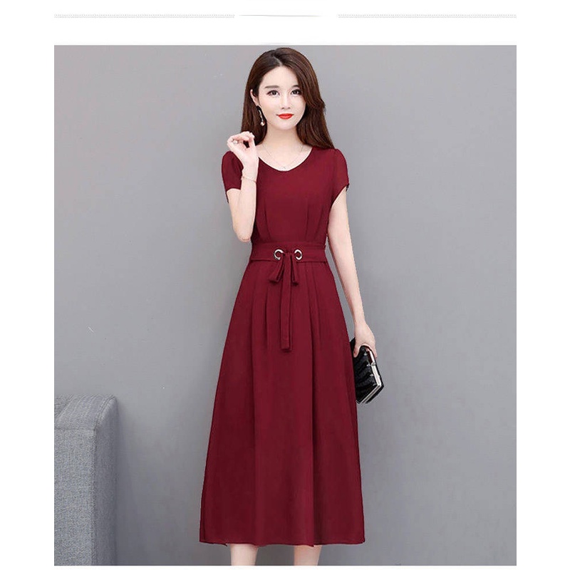 Women Elegant Short Sleeve Dress Women Casual Long Dress A-Line Midi Dress