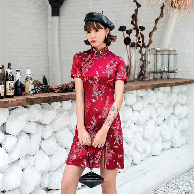 Short Daily Banquet Dress Retro Slim Fit Cheongsam Improved Chinese Style Performance Costumes