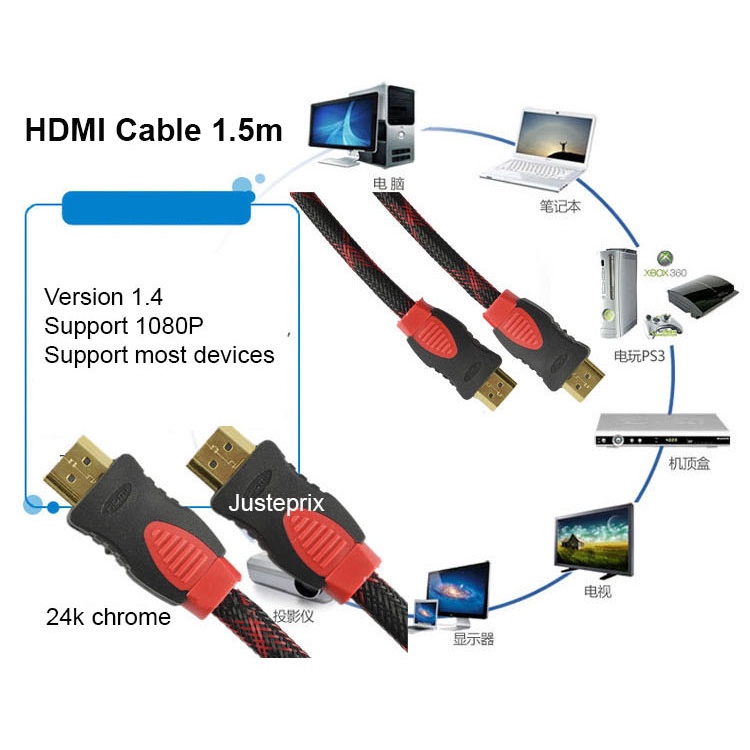 1.5M 3M 5M 10M 15M 20M HDMI Male to HDMI Male Cable 1.4v Type A Standard Full HD 1080P