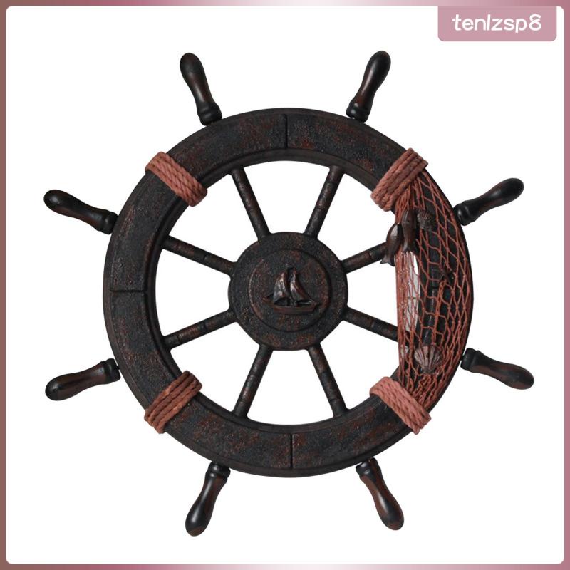 [ Vintage Ship Wheel Wall Decor Wooden Ship Rudder Wheel Wall Hanging Ornament for Mediterranean Nautical Decor