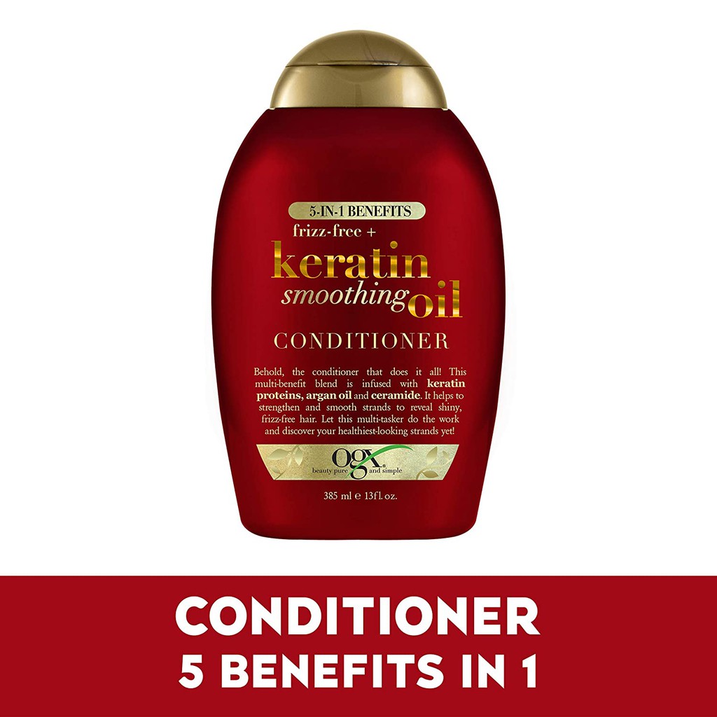 OGX Frizz-Free Keratin Smoothing Oil Conditioner, 5 in 1 for Frizzy Hair Shiny Hair, 13 fl oz
