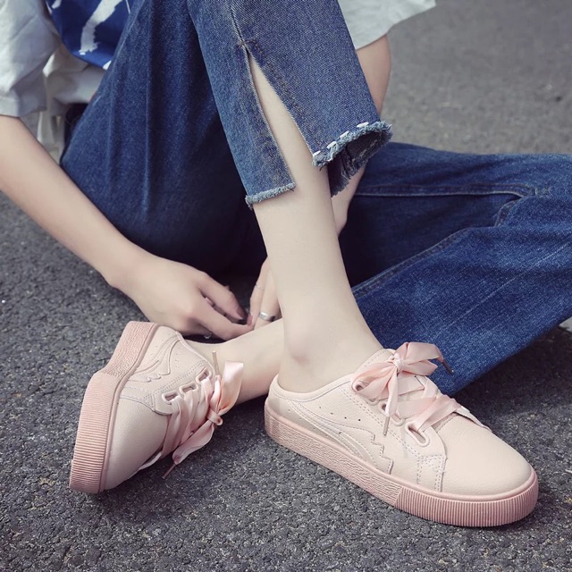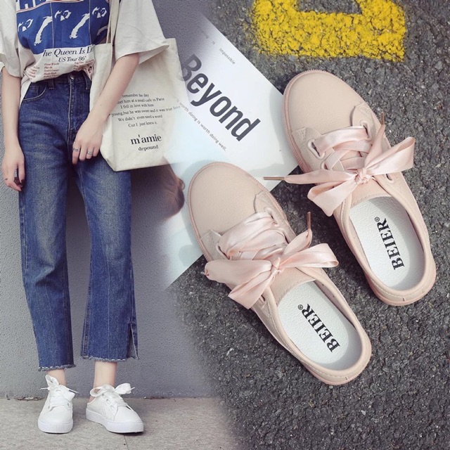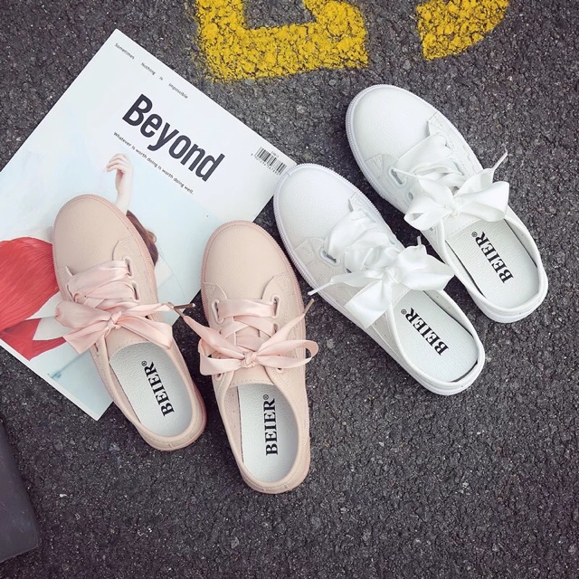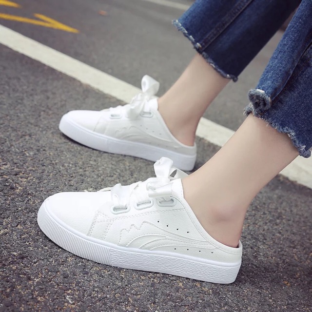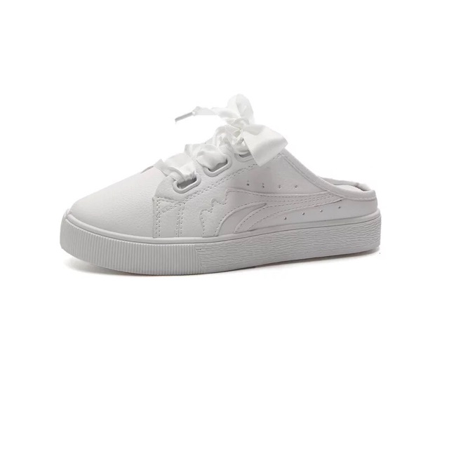 [35~40]Korean Ribbon White Shoe 800-002 半拖小白鞋女春夏季新款韩版百搭板鞋一脚蹬懒人无后跟鞋