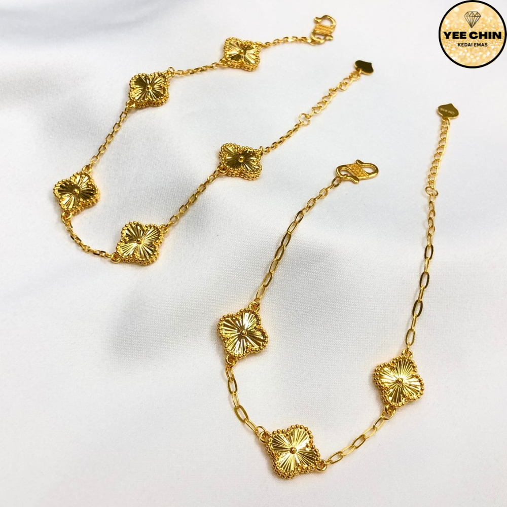 Yee Chin Rantai Tangan Emas 916 Fesyen Clover 5D / Bracelet Clover Gold 916