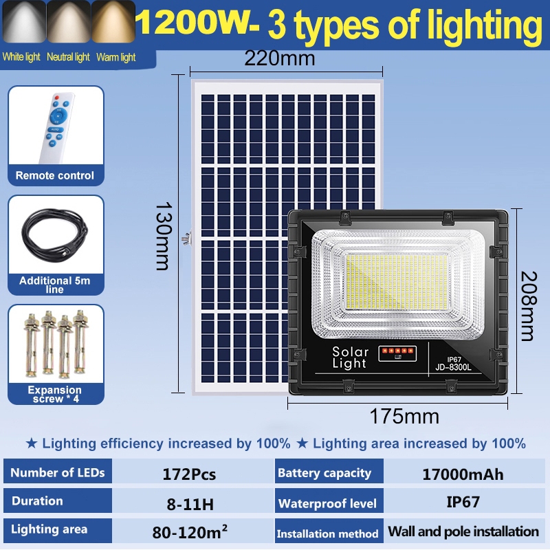 16000W Lampu Solar Waterproof Solar Light Outdoor Lighting Upgrade Solar Lamp Lighting