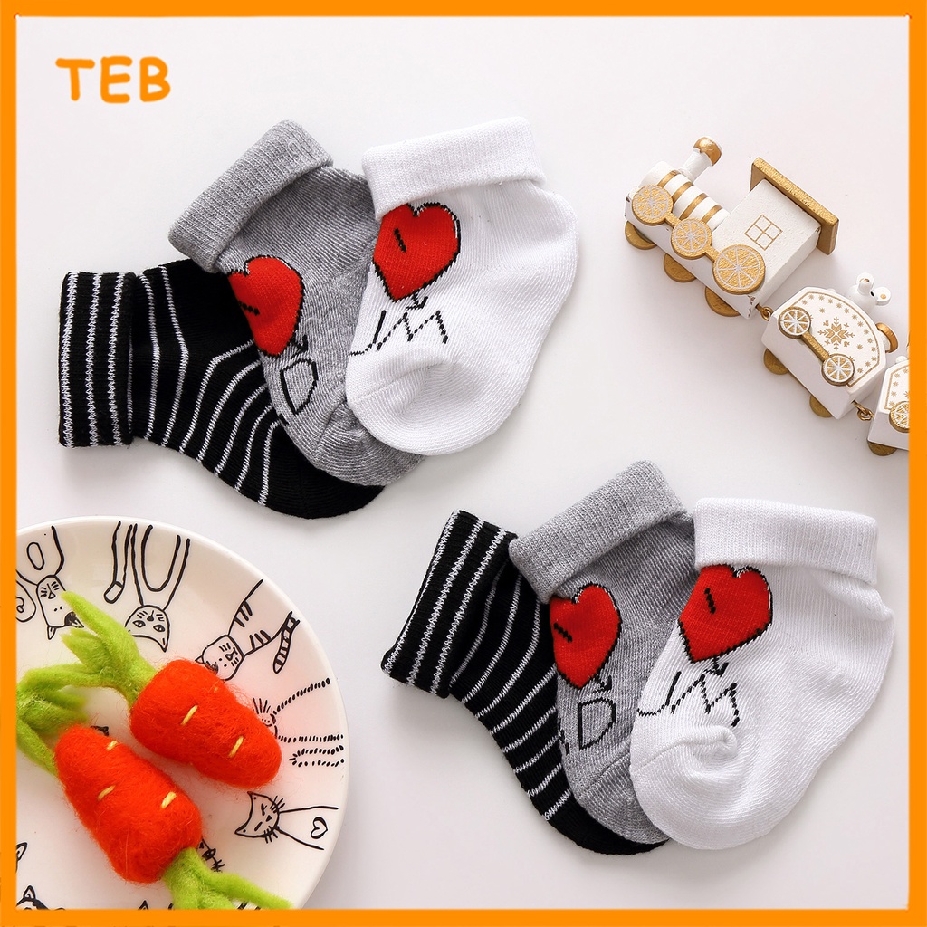 3 Pairs Baby Crew Socks 6-12M Cotton Cute Design | Stokin Bayi Comel Kapas Corak Atas Buku Lali 6-12 Bulan