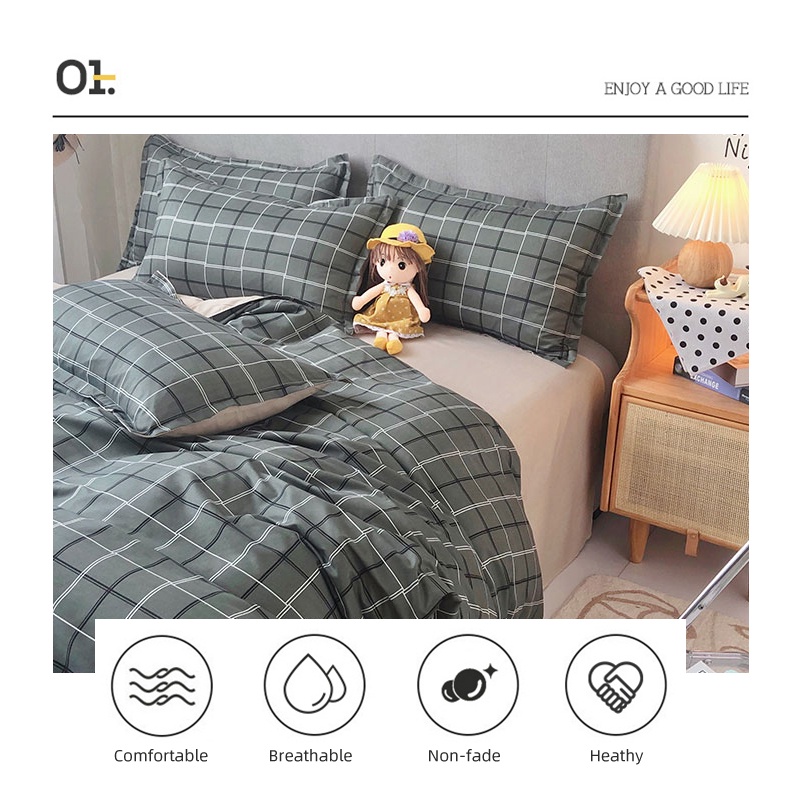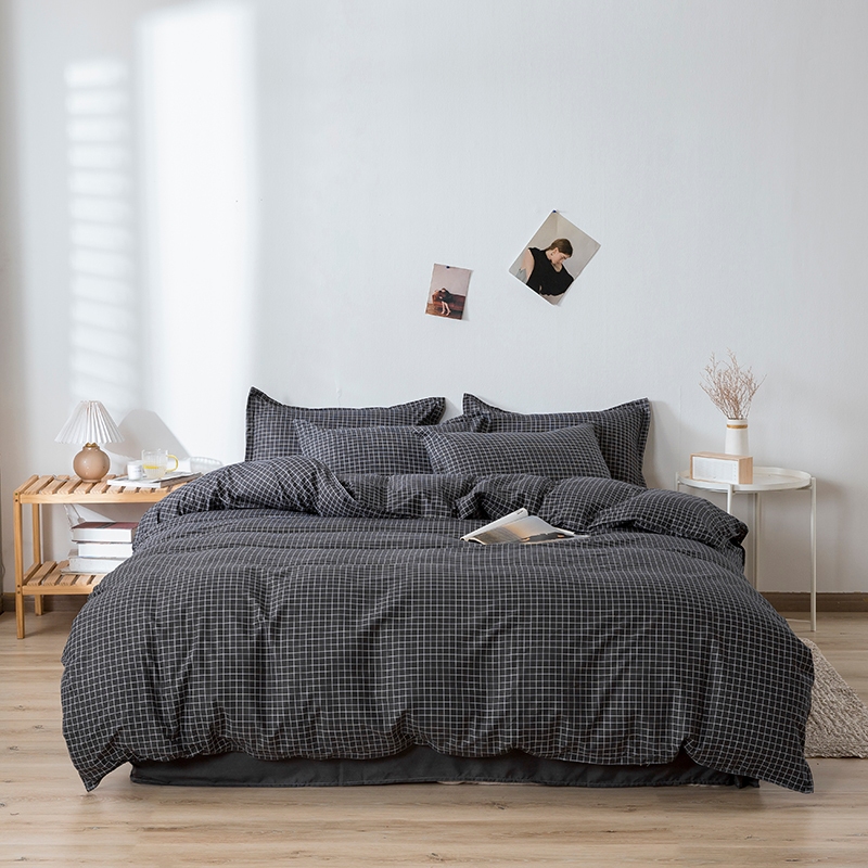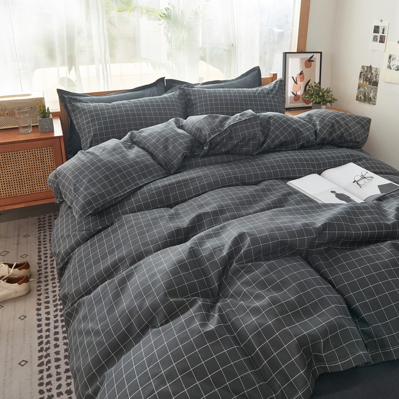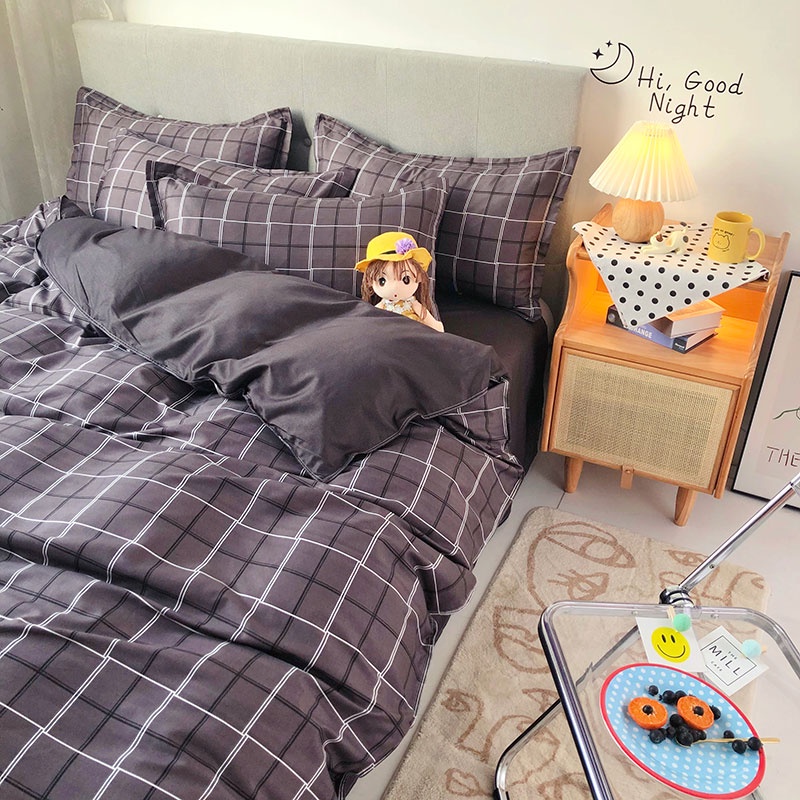 Geometric Black 4in1 Bedding Set 几何格子四件套 Set cadar saurng Katil Hitam Minimalis Queen