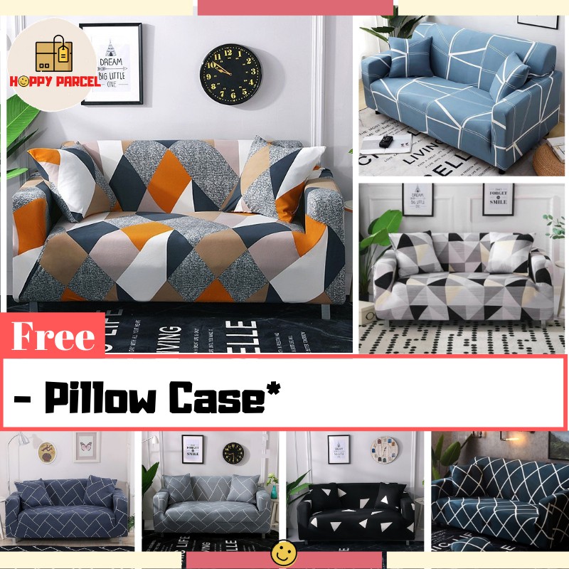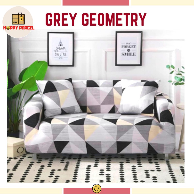1/2/3/4 Seater geometric Sofa Cover L shape Universal Slipcover Elastic | Sarung Sofa