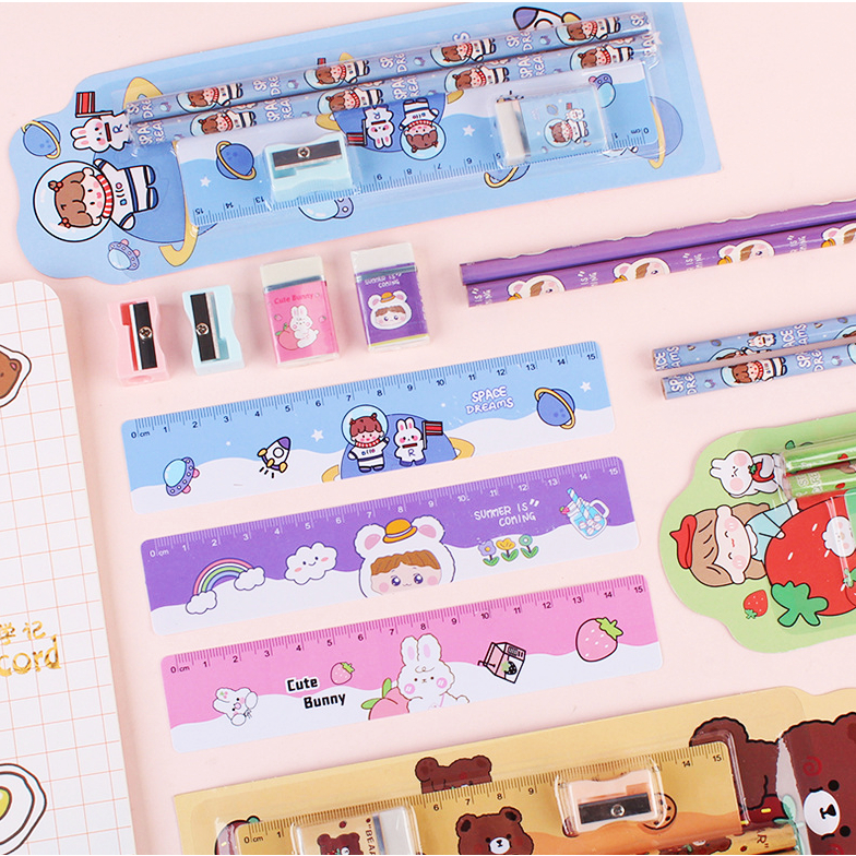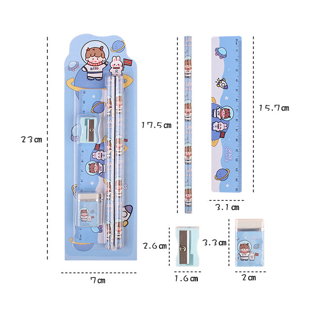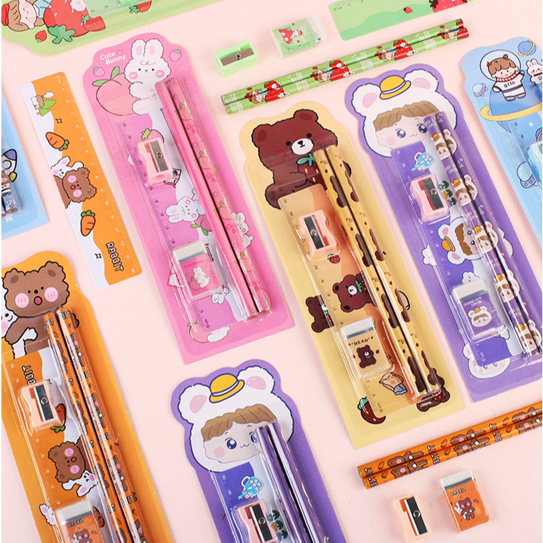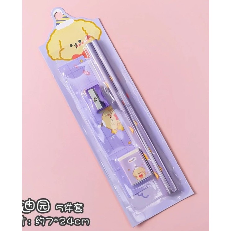 5 In 1 Stationery Set Pencil Ruler Eraser Kids Children Student School Gift Pack Reward Gift Doorgift Alat Tulis 文具套装