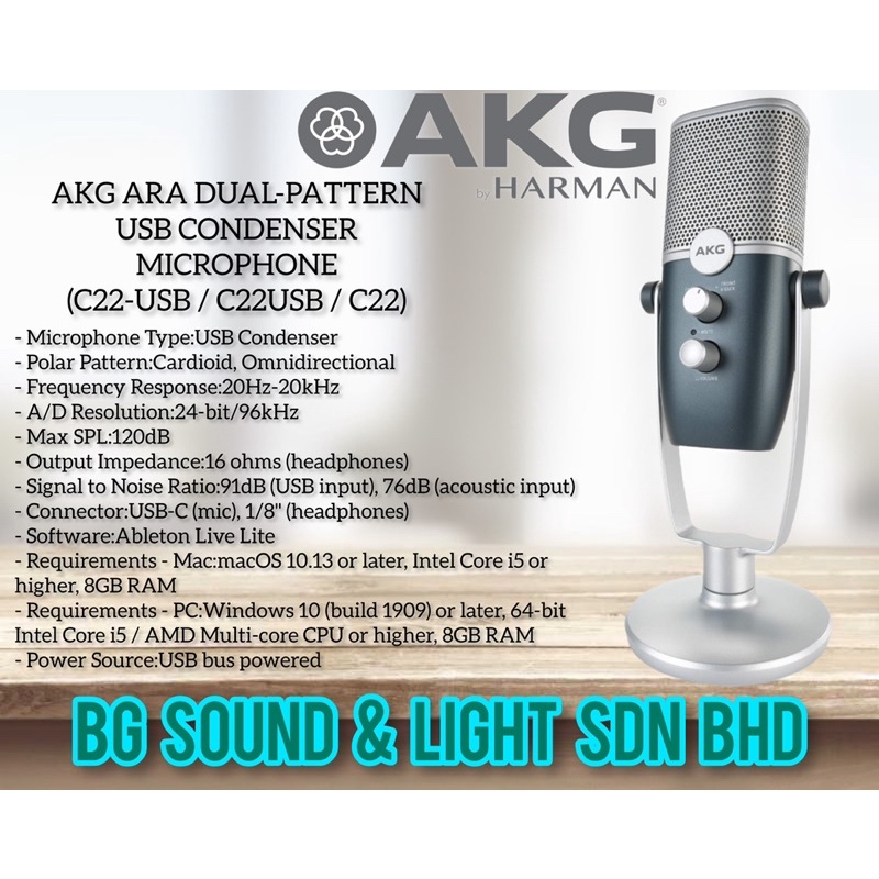 AKG ARA DUAL-PATTERN USB CONDENSER MICROPHONE ( C22-USB/C22USB/C22 )