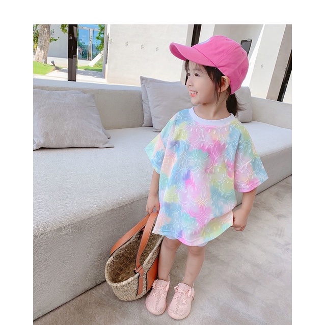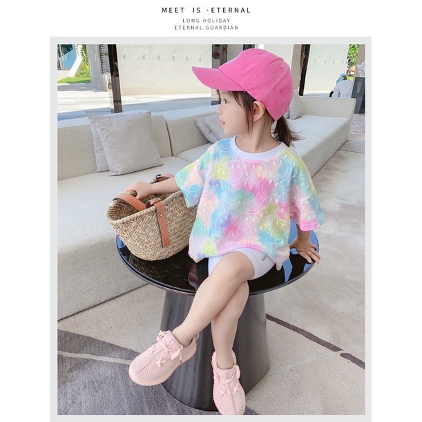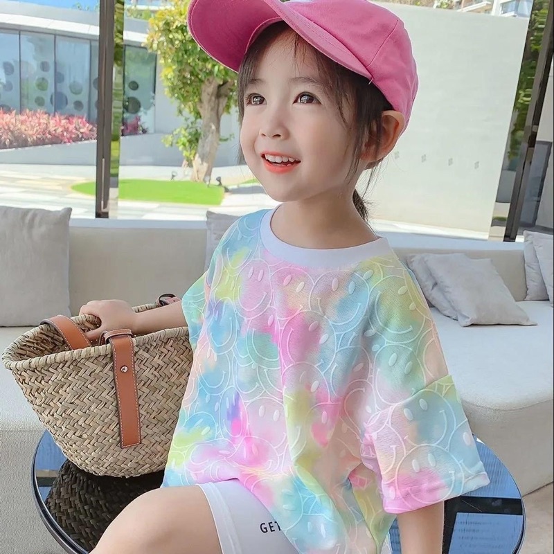 🔥T-shirt mother and daughter fashion tie-dye printed tops parent-child clothes children's 女童短袖T恤母女时尚扎染印花洋气上衣亲子装夏装新款儿童半袖潮