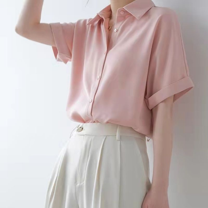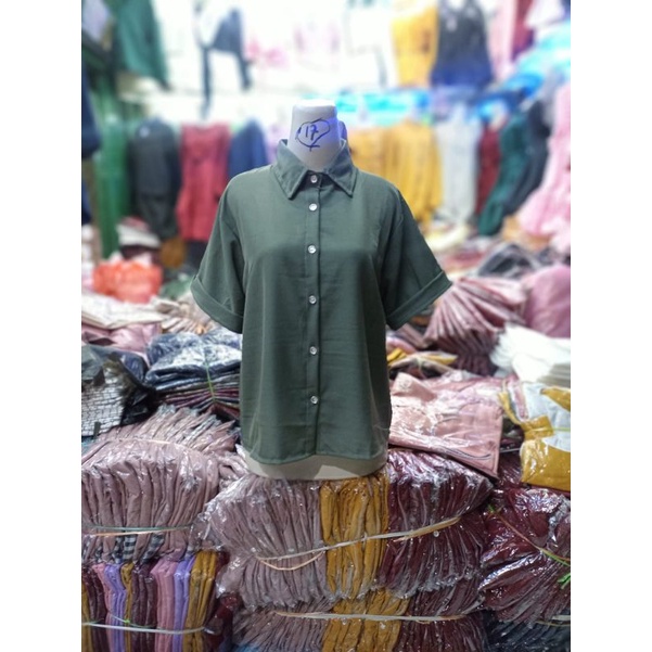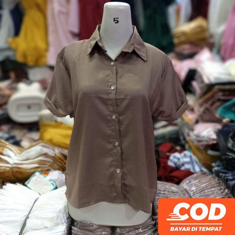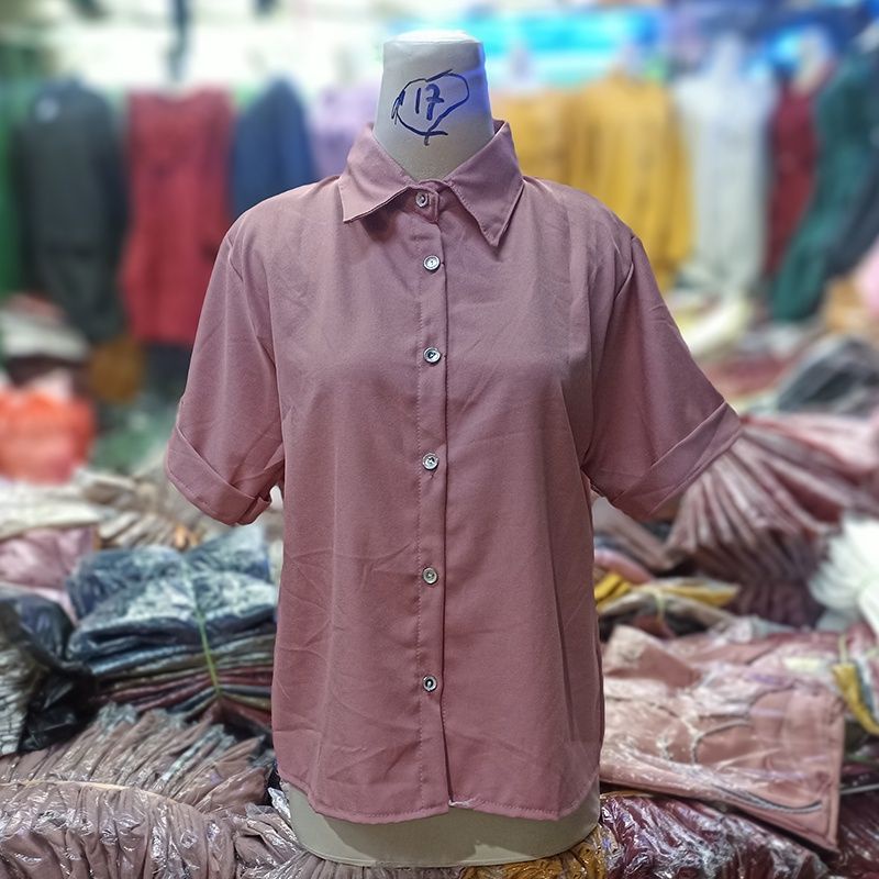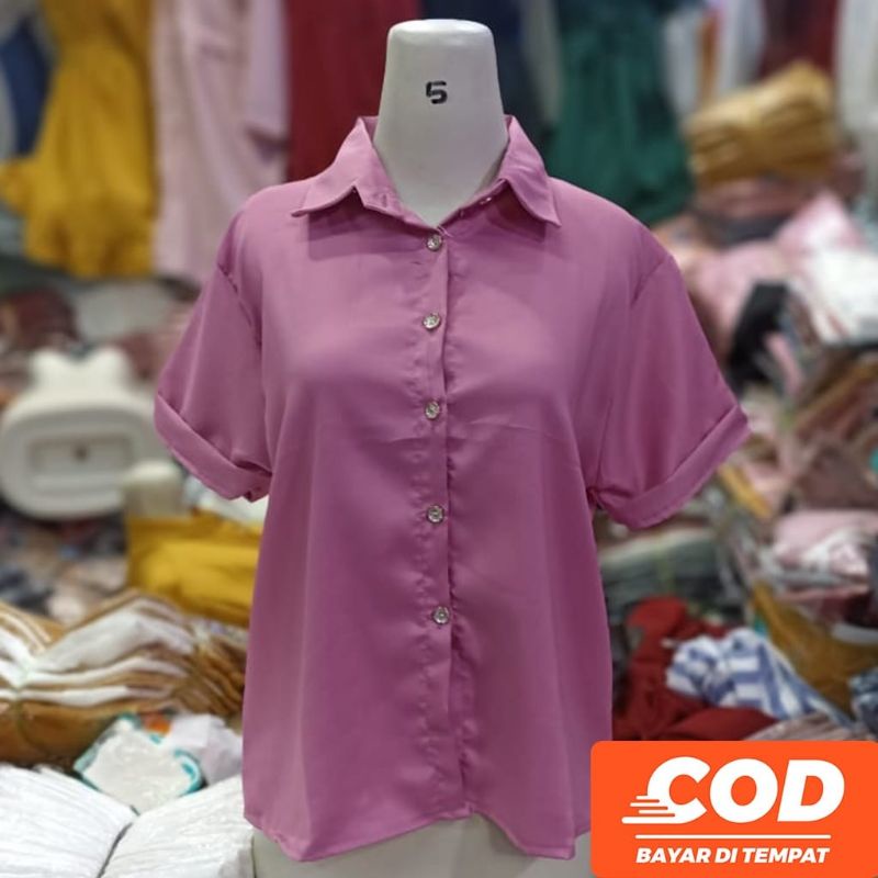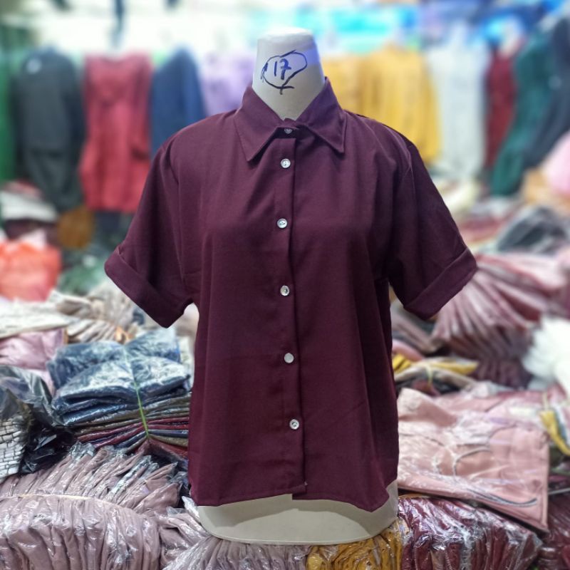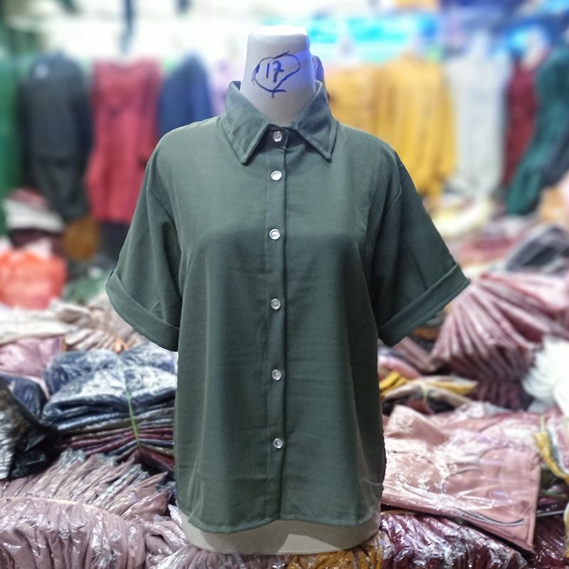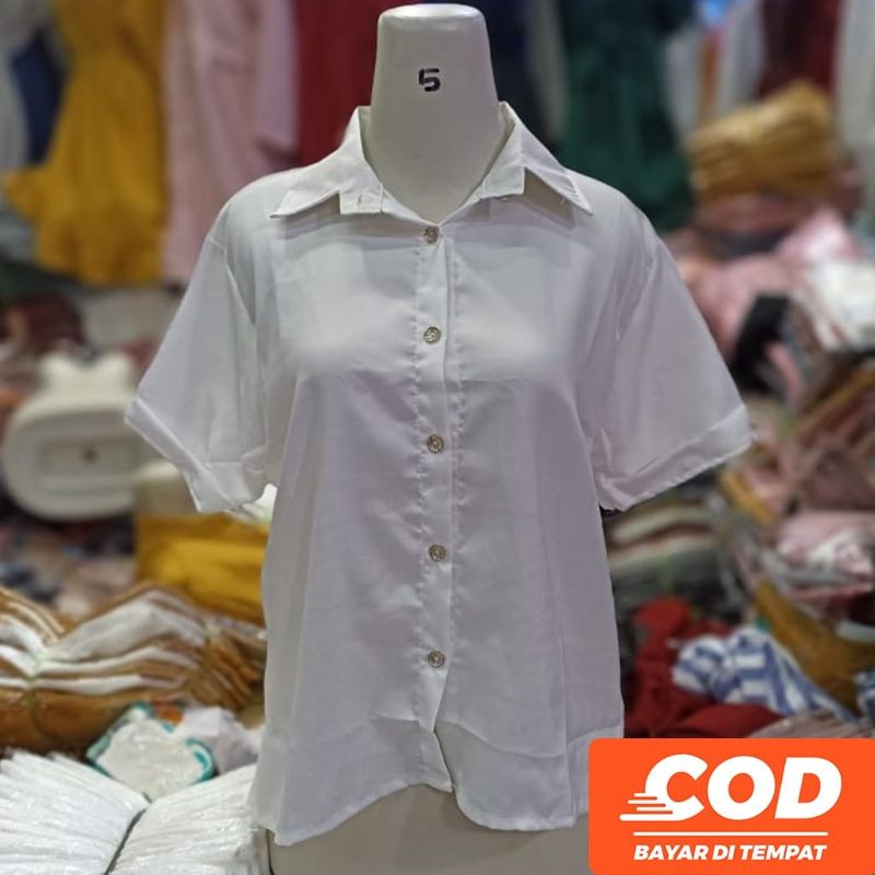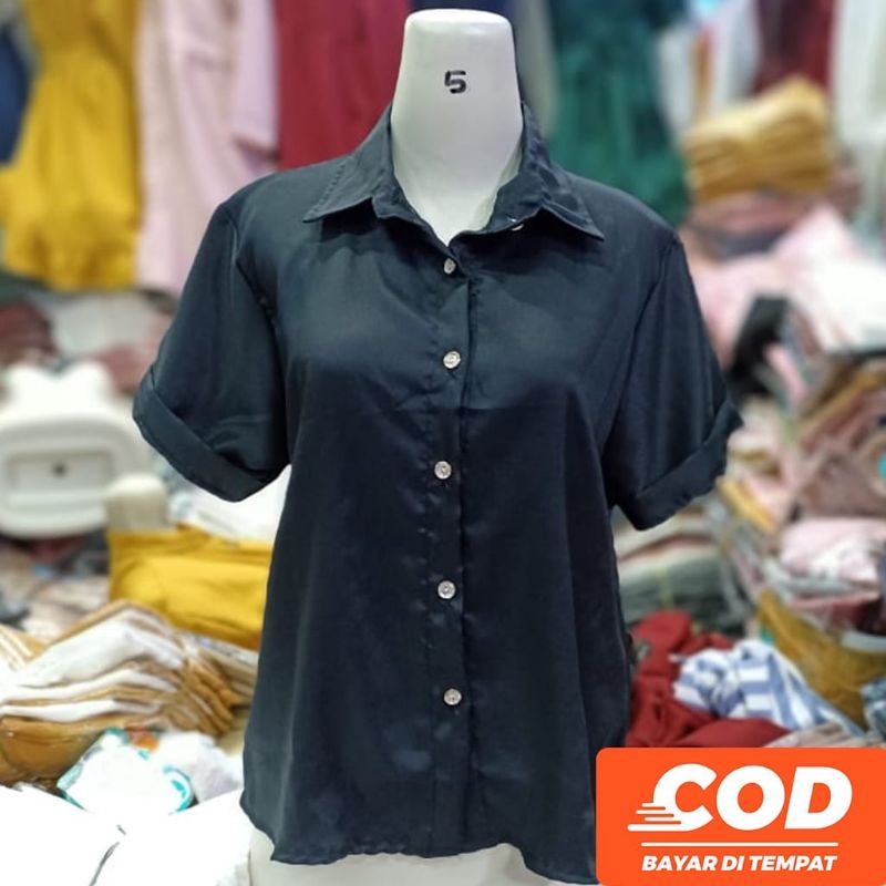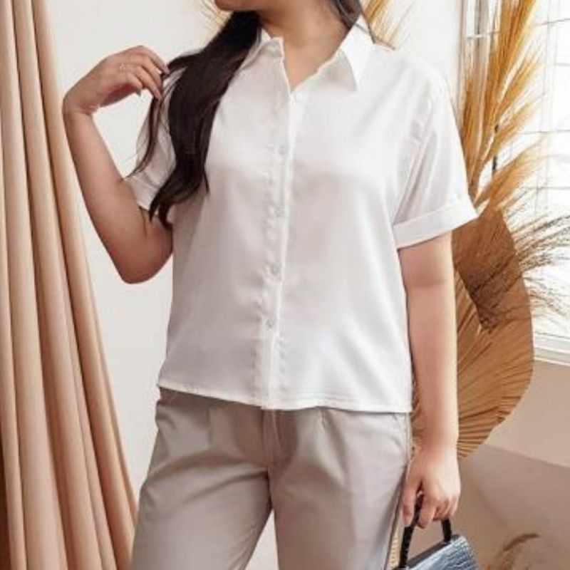 KEMEJA Women's Casual Short Sleeve Shirt Plain Black White Syakila Twill
