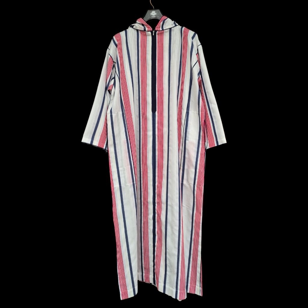 MERAH KATUN Djellaba.id Umrah Gamis Muslim Clothes Prayer Robe Hoodie Jalabah Kapucong Moroccan Men's Cotton Striped Navy Red White