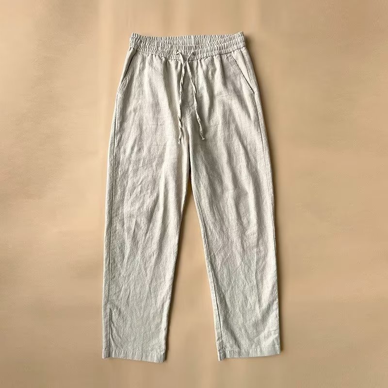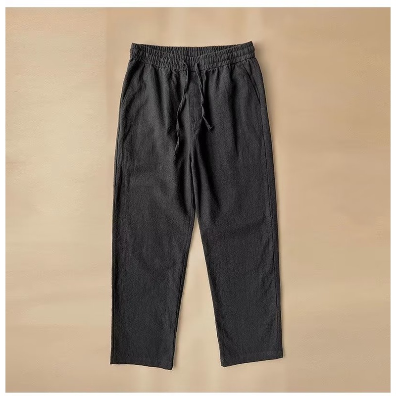 Cotton and linen pants, men's loose and straight cropped pants