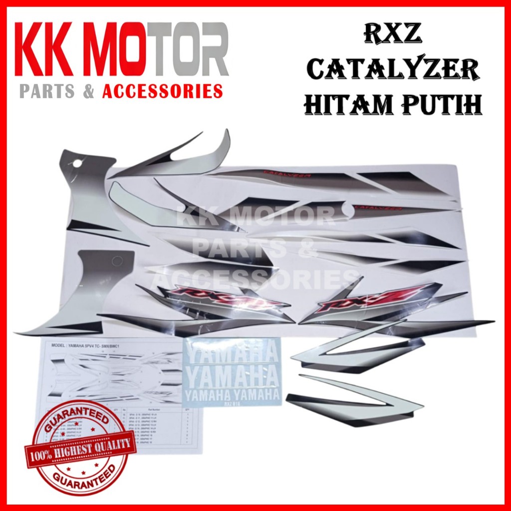 YAMAHA RXZ CATALYZER 5PV STICKER STIKER STRIPE HITAM PUTIH COMPLETE REPRO (PRINT CUT)