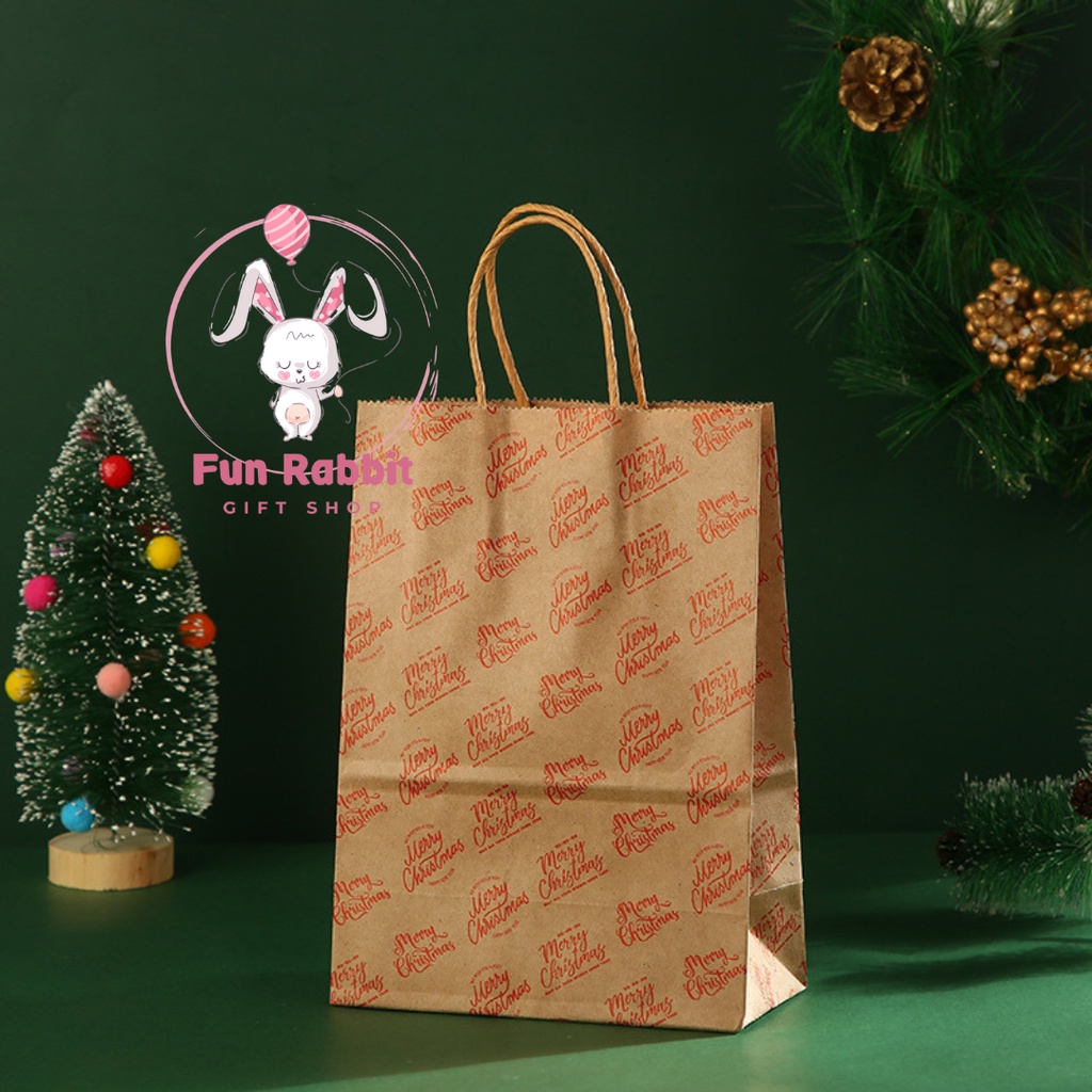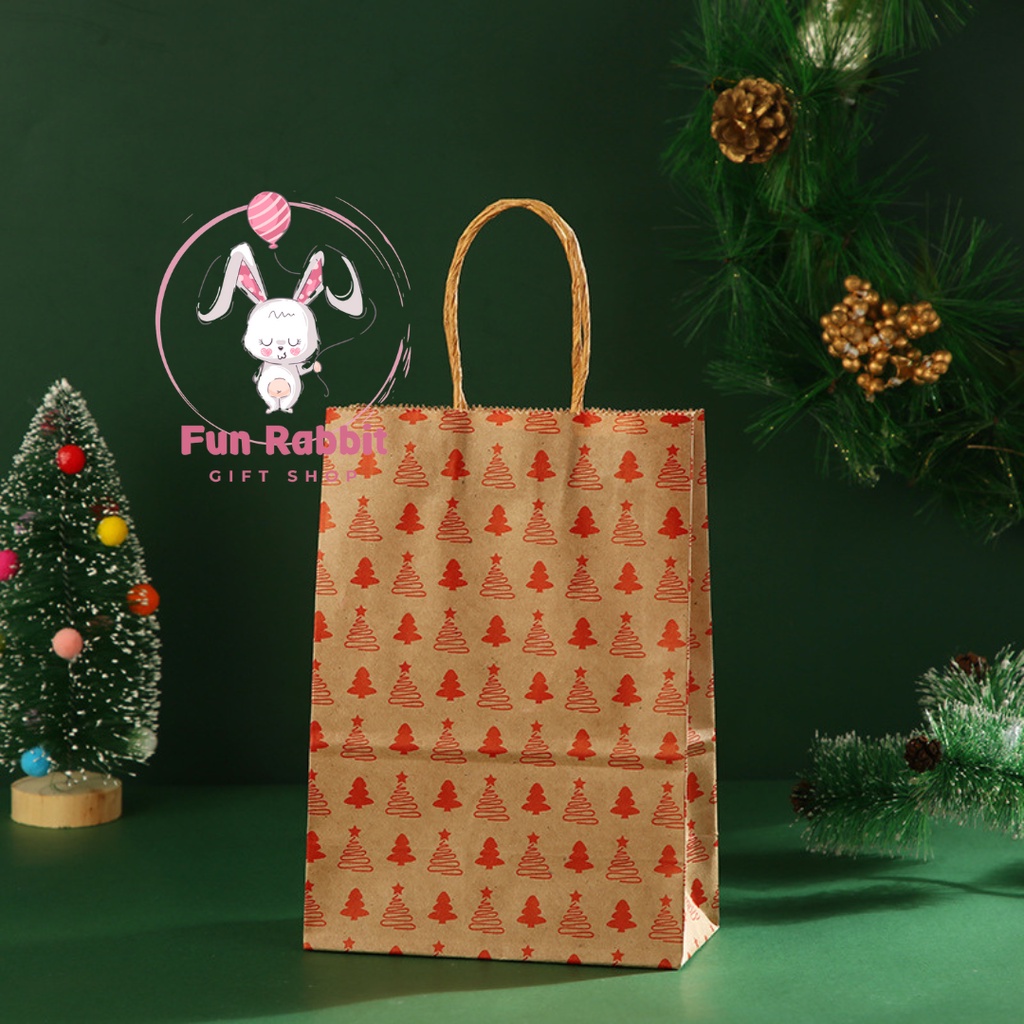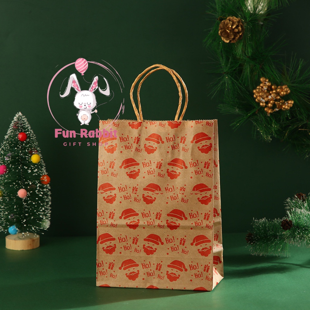Christmas Portable Kraft Paper Bag Merry Christmas Decoration Supplies Christmas Series Xmas Party Gift Bags Tote Bags