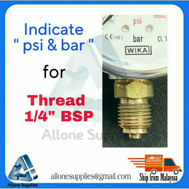 " WIKA " 100% Original Pressure Gauge , 10/11 Bar Diameter 2" 1/2 (Diameter 63mm), 1/4" BSP and NPT Bottom Connector .