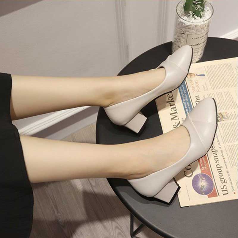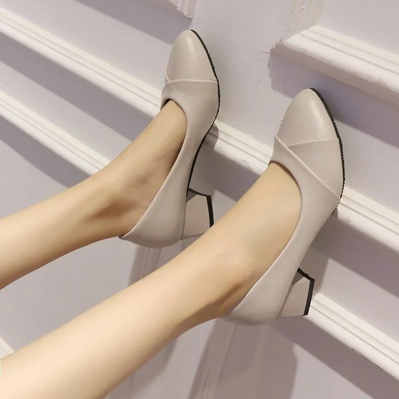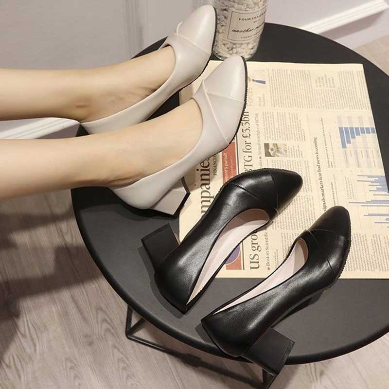 LANCESHOES Kasut raya perempuan Raya Heels 2023 kasut tinggi Plus Size 34 41 Women's Casual Soft Leather Chunky Heel Mid Heel Work Shoes Interview Occupation Pointed High Heels