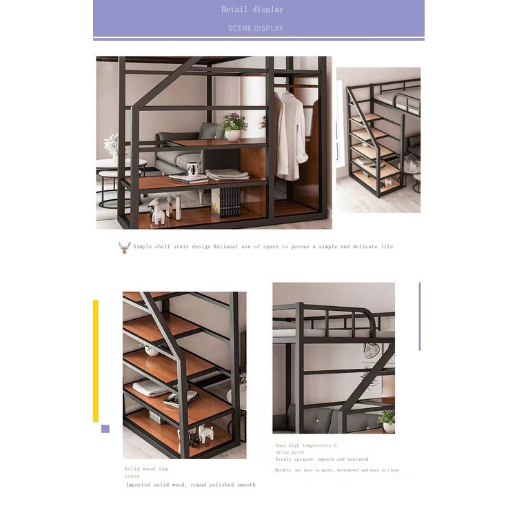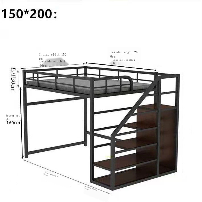 Iron loft bed duplex second floor bunk bed canopy bed space-saving attic bunk apartment high and low iron frame bed