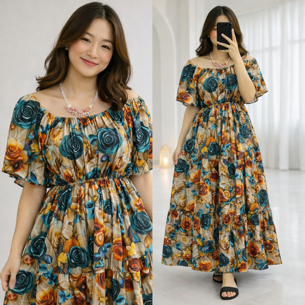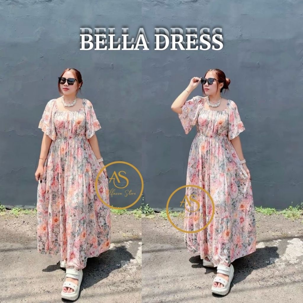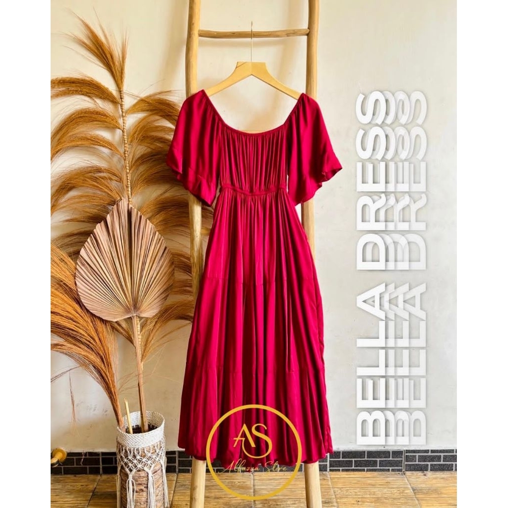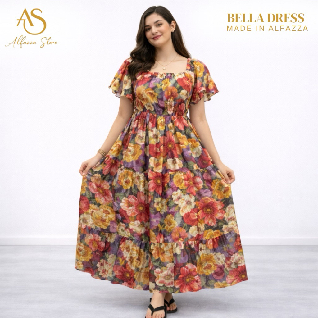 ALFAZZA - (BELLA MIDI DRESS) RAYON VISCOSE MOTIF CASUAL OUTFIT HOLIDAY DRESS WOMEN CASUAL DRESS