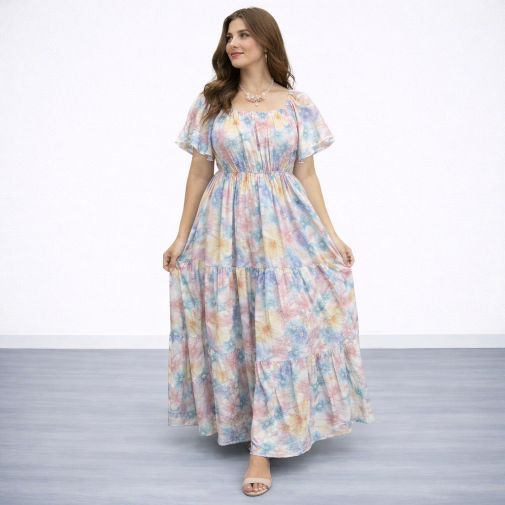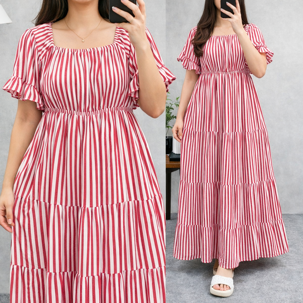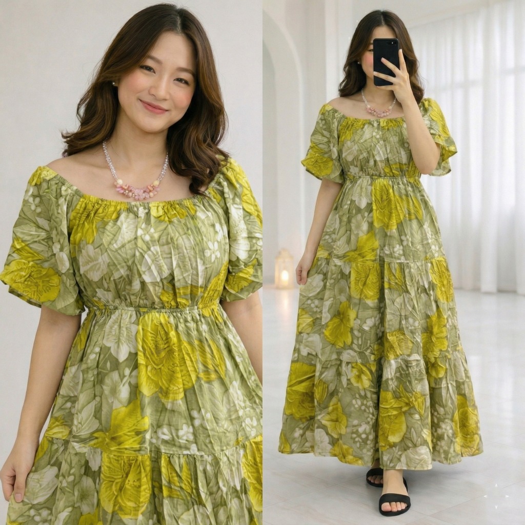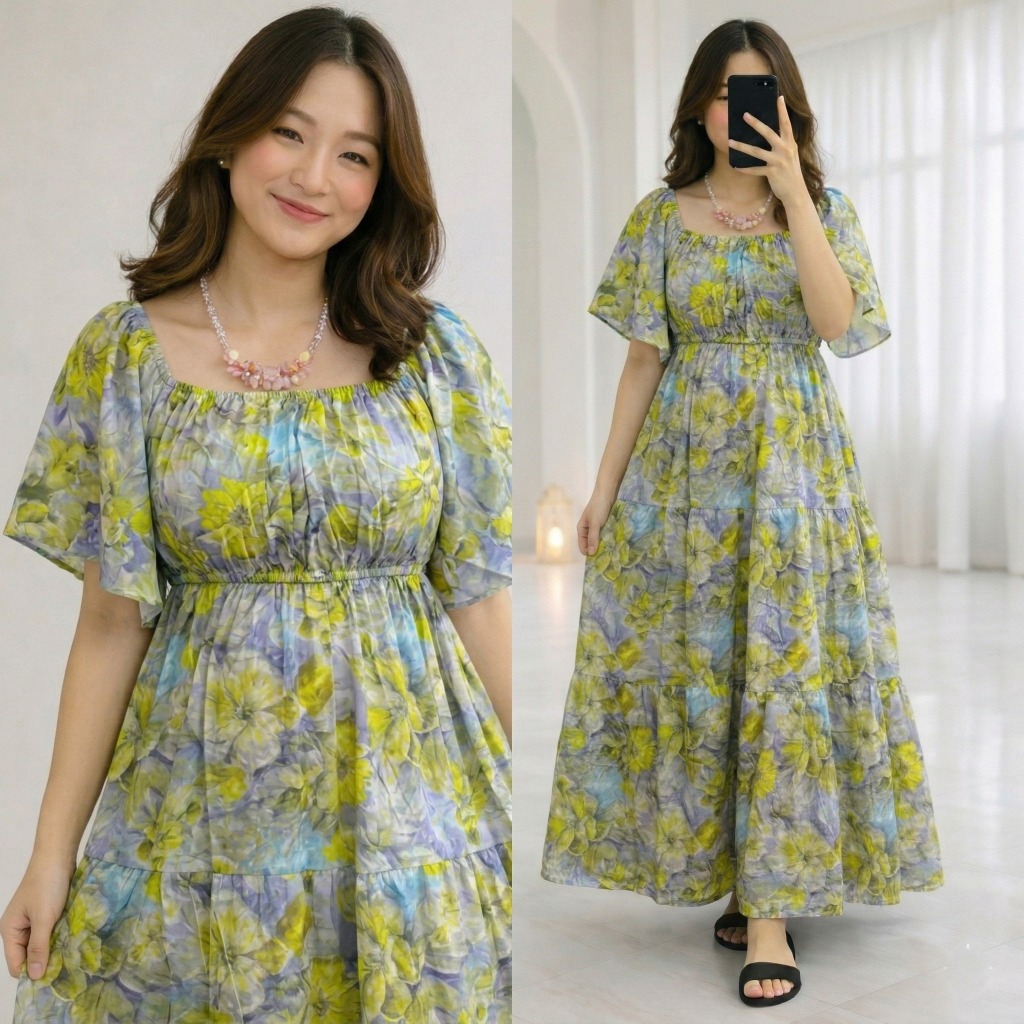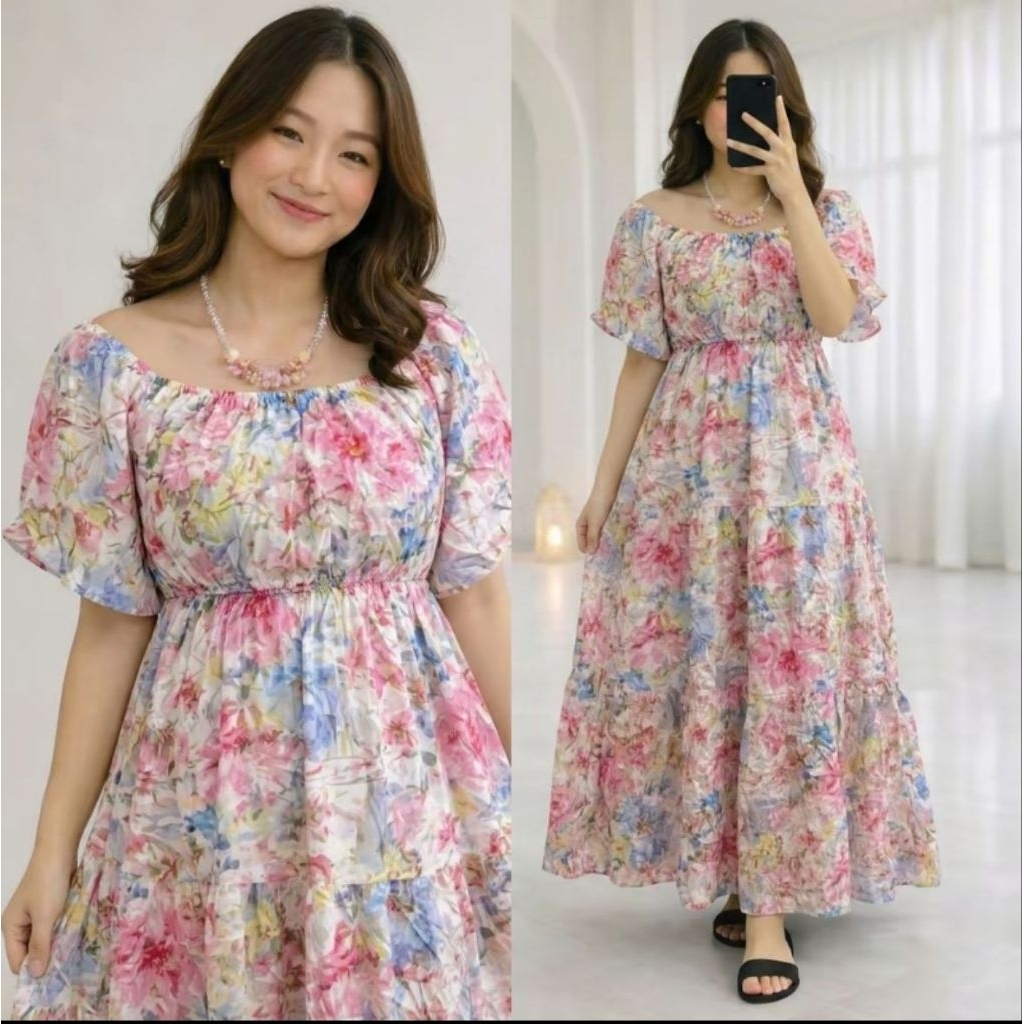 ALFAZZA - (BELLA MIDI DRESS) RAYON VISCOSE MOTIF CASUAL OUTFIT HOLIDAY DRESS WOMEN CASUAL DRESS