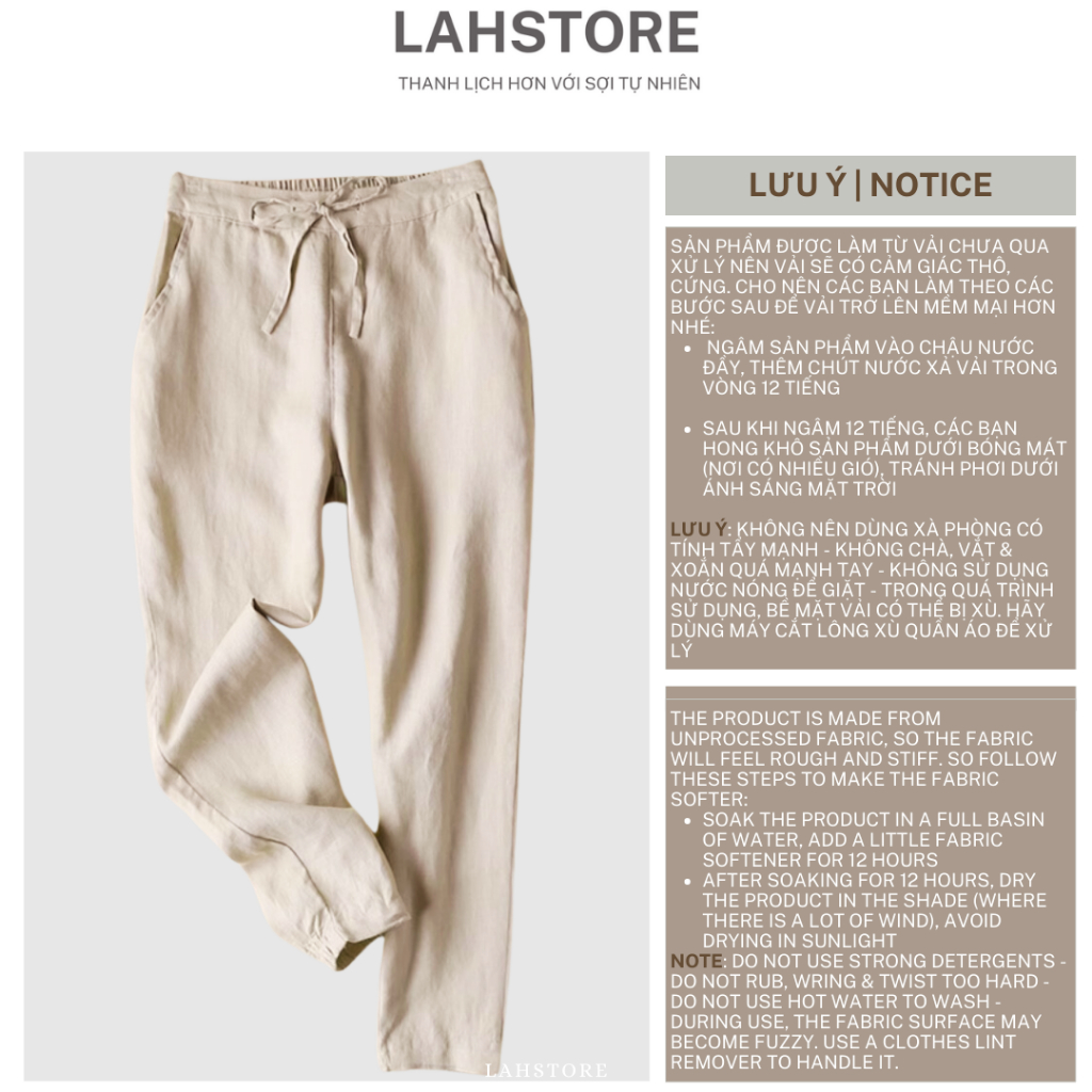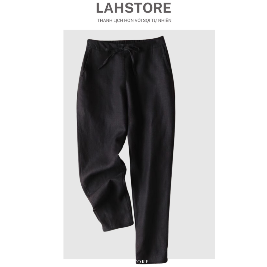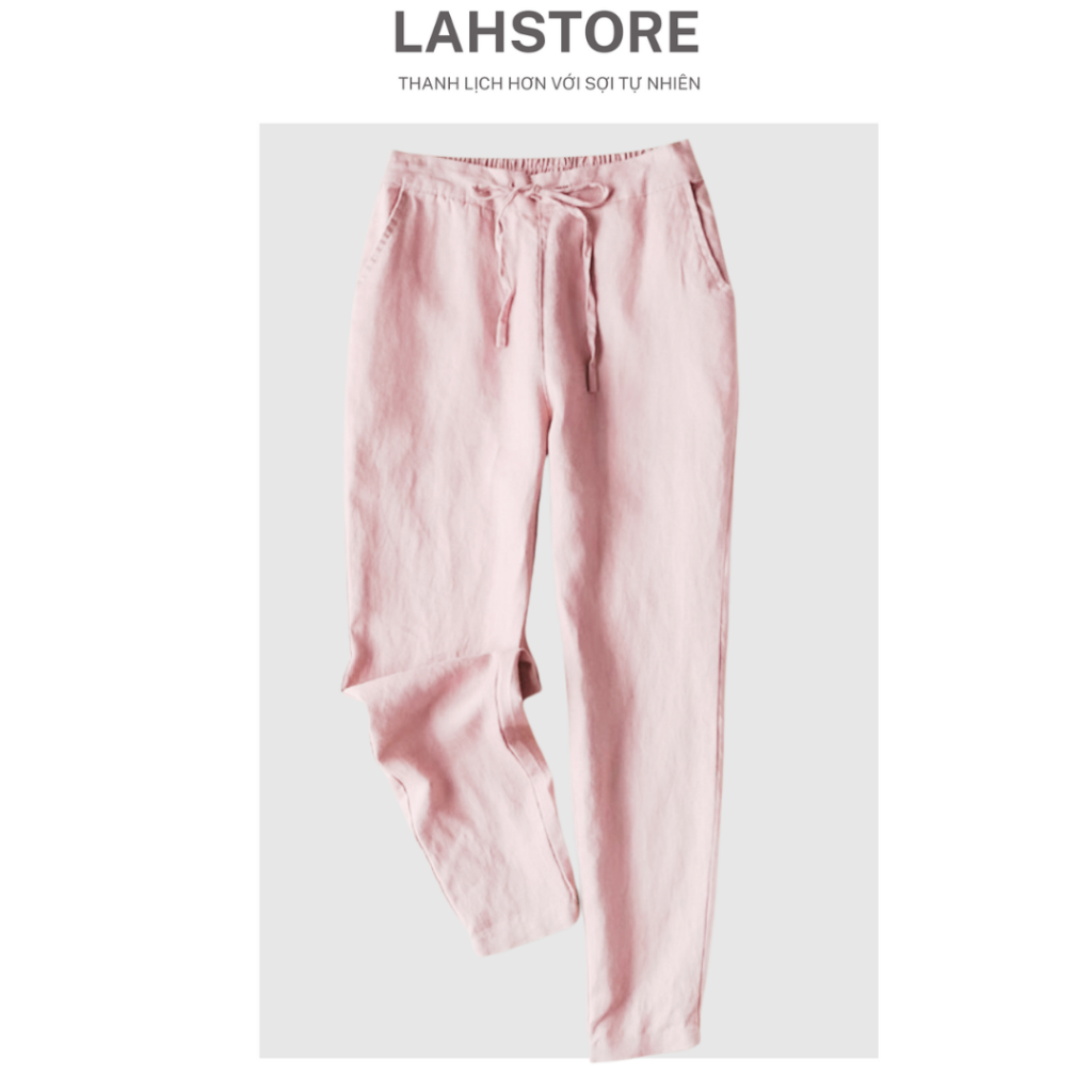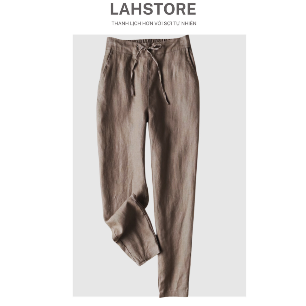 LAHSTORE women's baggy pants in linen with elastic waistband and youthful waistband QD08 (Brown) pants women