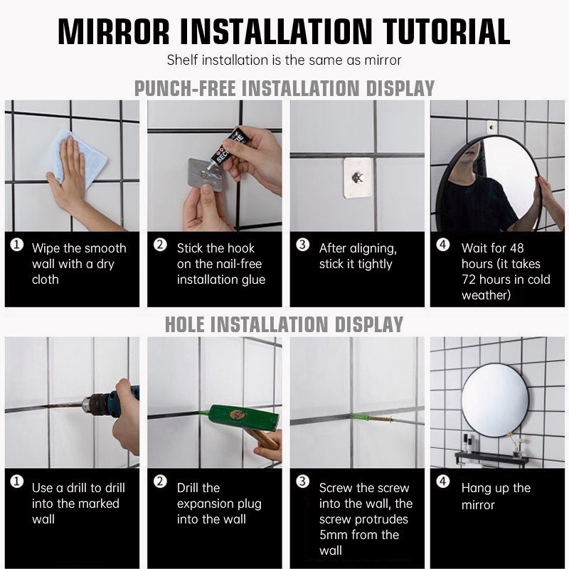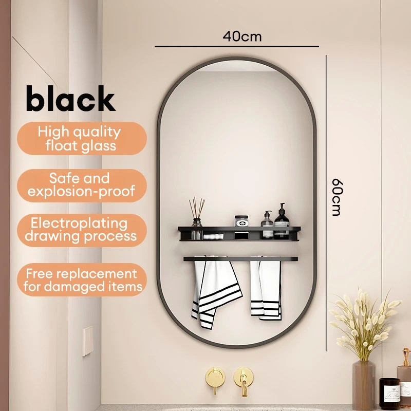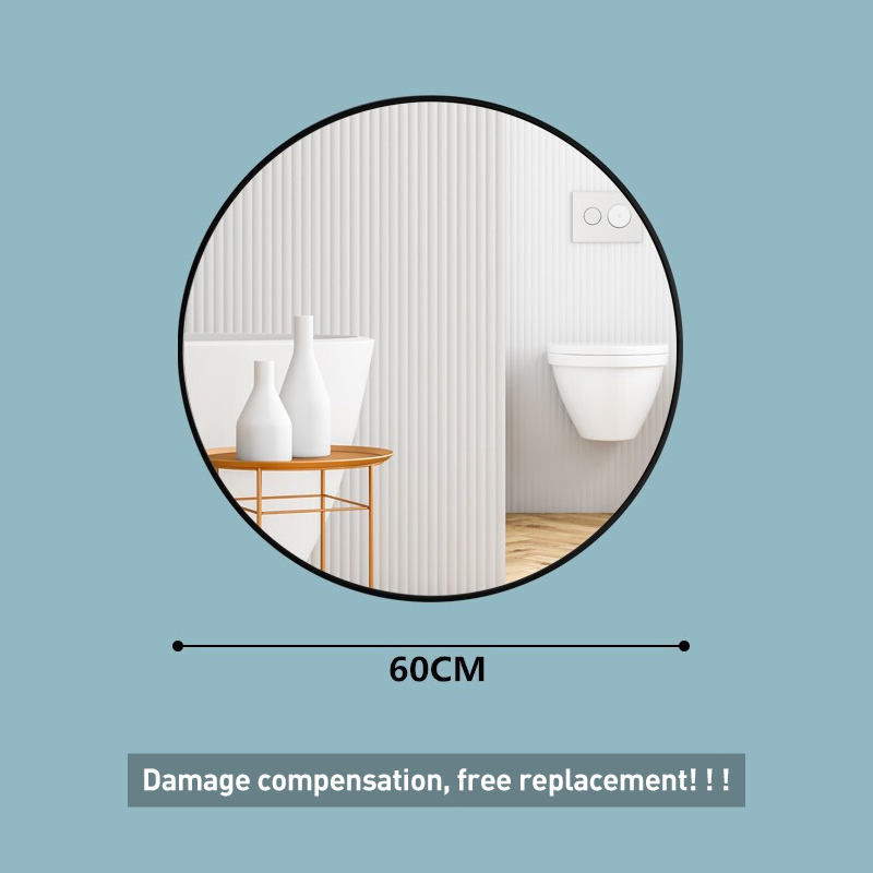 LI|Bathroom Mirror Explosion-proof Punch-free With Shelf Aluminum Alloy Frame Round Makeup Bedroom/Toilet Cermin 镜子
