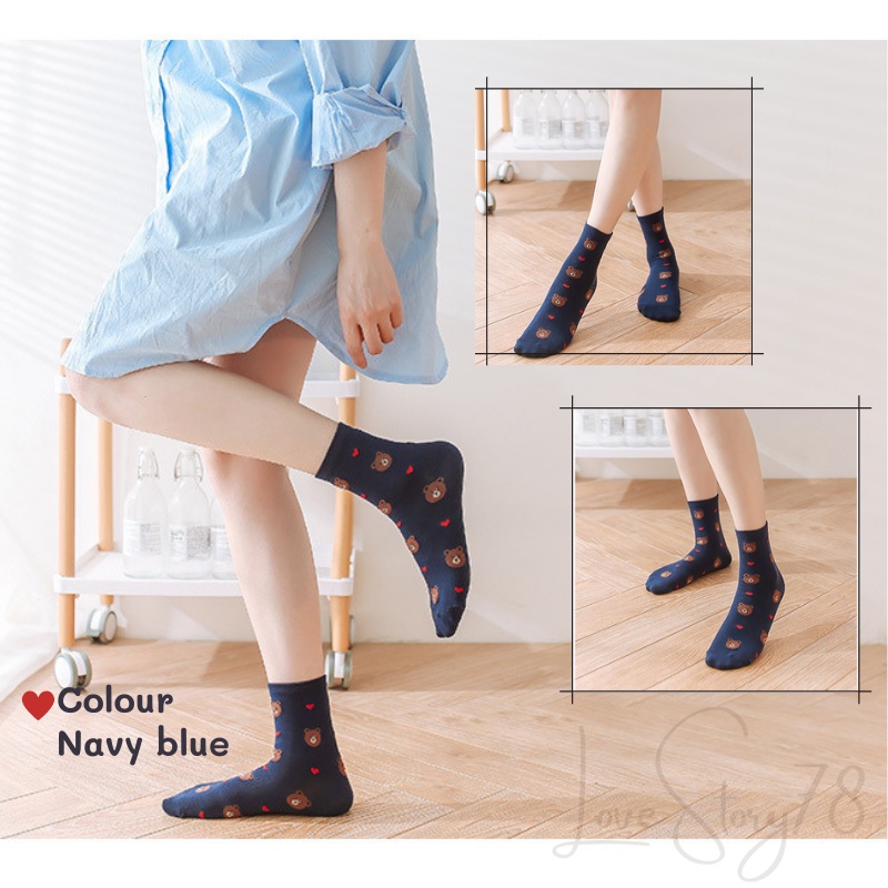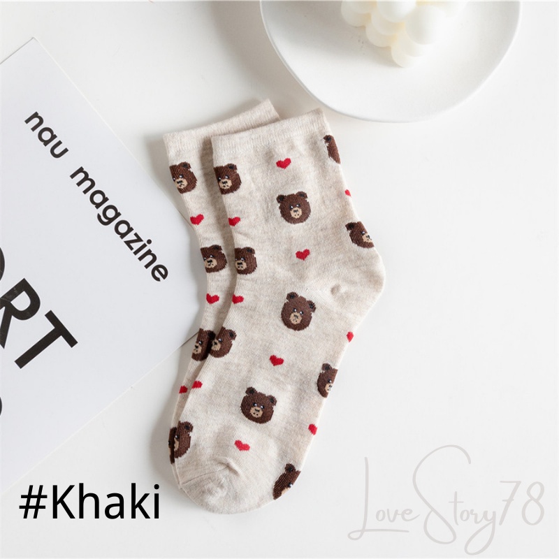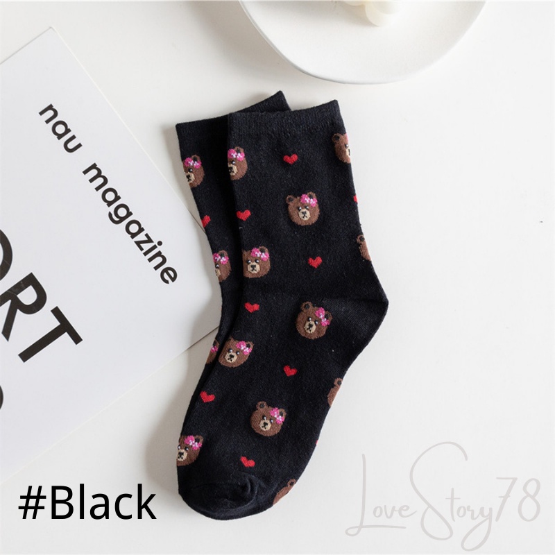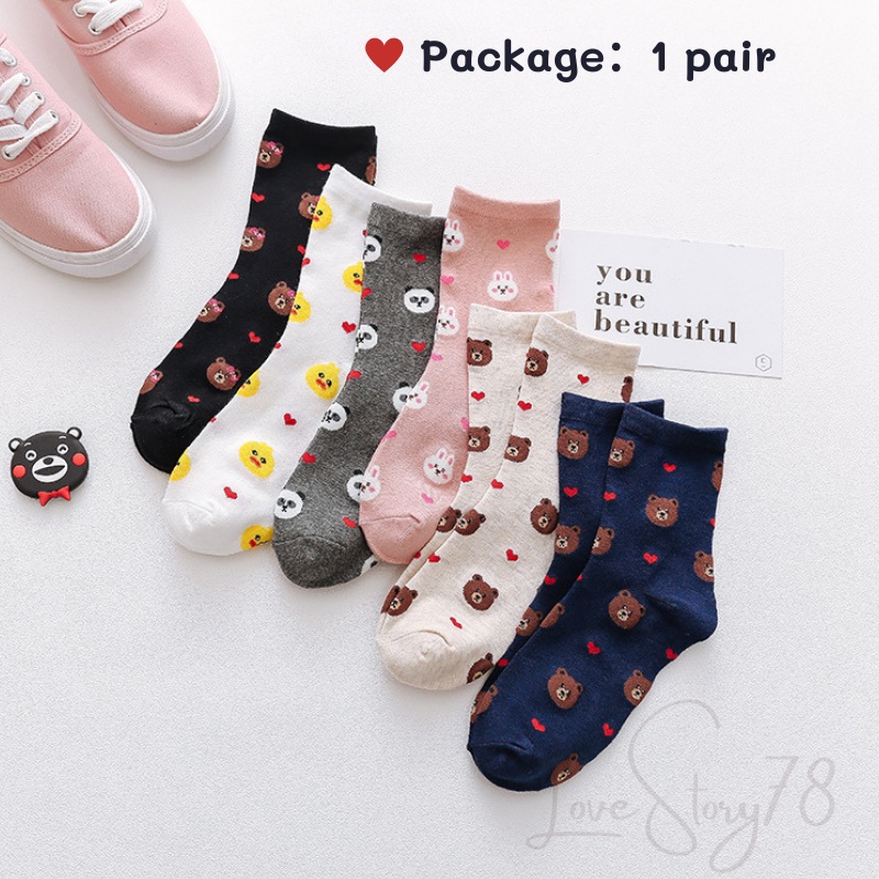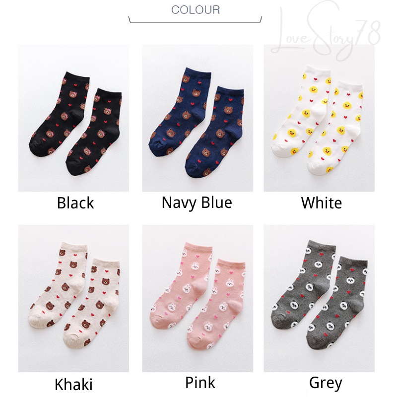 LOVESTORY Kualiti Stokin Comel Animal Cartoon Socks Women Cute Sock Stocking Stokin Bear Stoking Panjang Wanita 袜子女