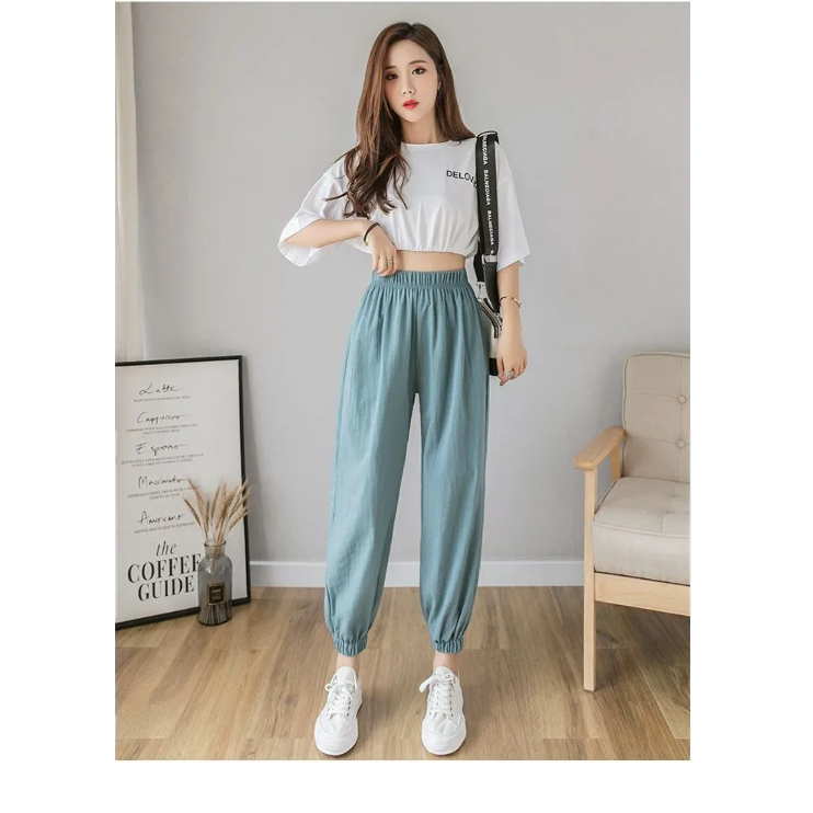 Women's Casual Pants Women High Waist Tie Leg Jogger Pants Seluar Panjang Perempuan