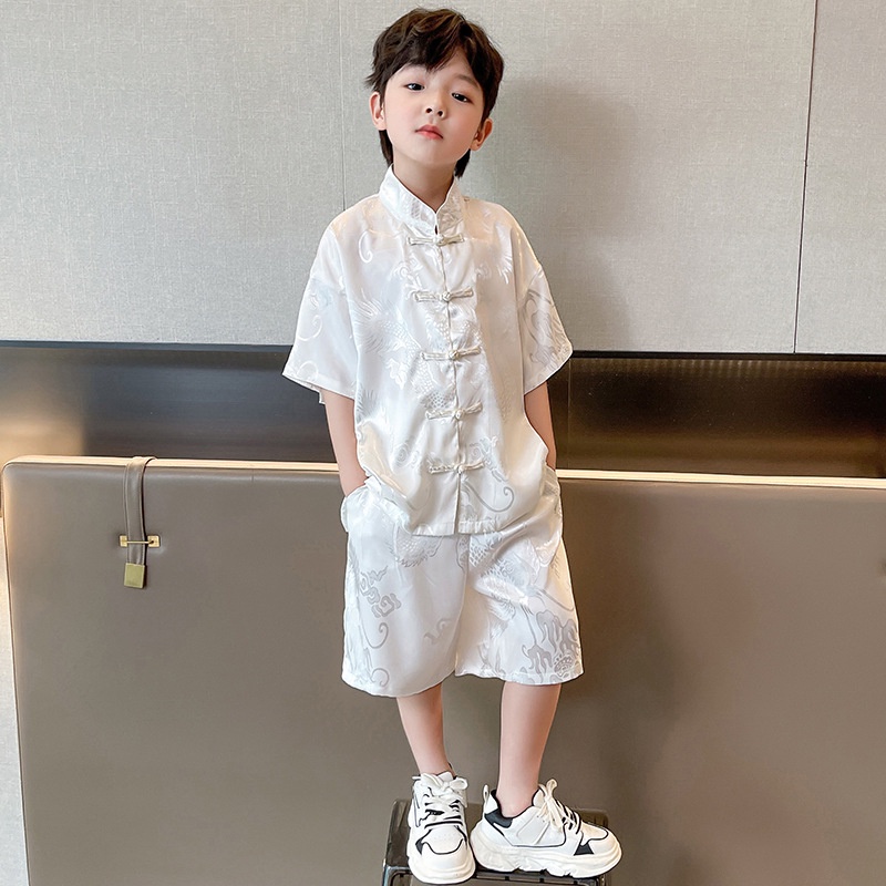 Fast Shipping 新年衣服2025 chinese new year clothes kids boy 新年套装 唐裝男童 cny boy clothes Boy Suit Summer Hanfu Children's Casual Big Boy Longteng Buckle Two-Piece Tang Suit