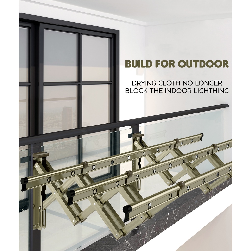 2M/1.5M X 3 BAR ALUMINIUM RETRACTABLE CLOTH HANGER (6688) OUTDOOR CLOTH HANGER WITH HANGER PENYANGKUT AMPAIAN 衣架