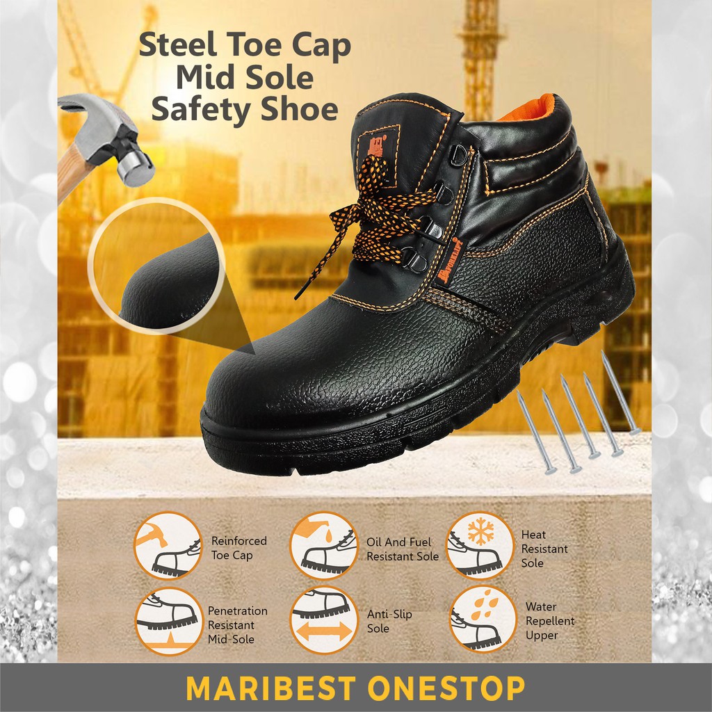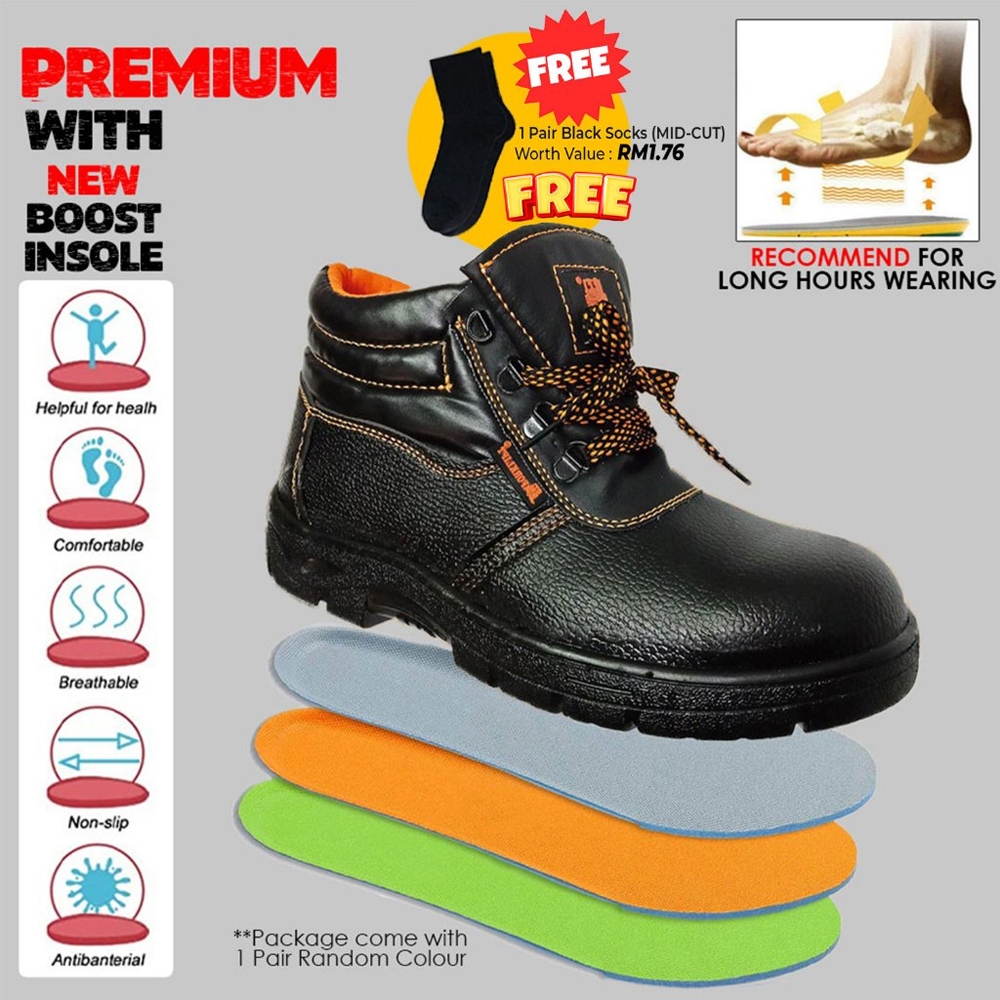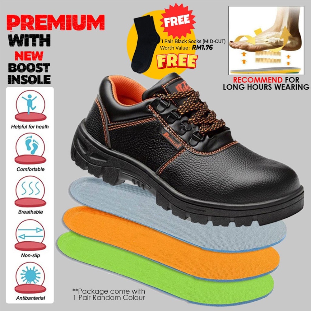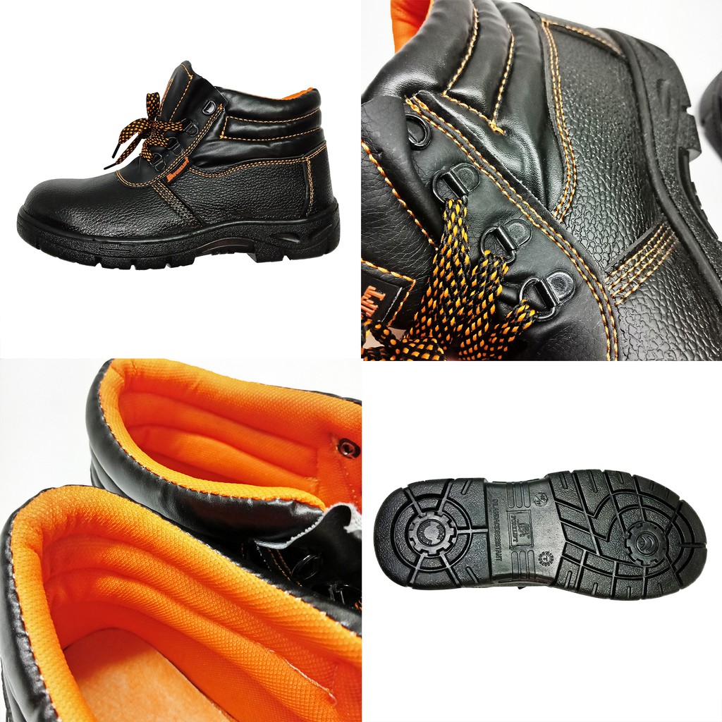 Safety Shoes Steel Toe Cap Mid Sole Medium OR Low Cut Safety Boots Black (RANDOM RED/ORANGE LINING) Kasut Keselamatan安全鞋