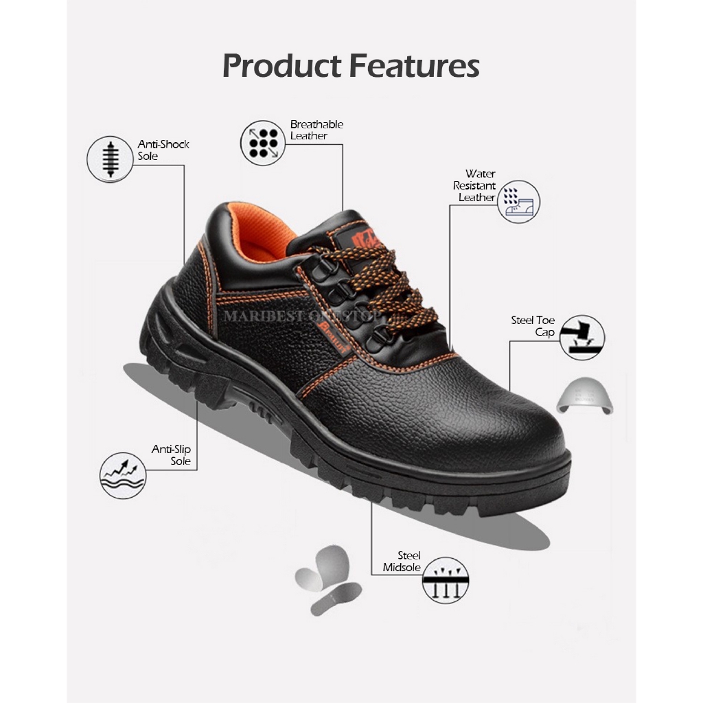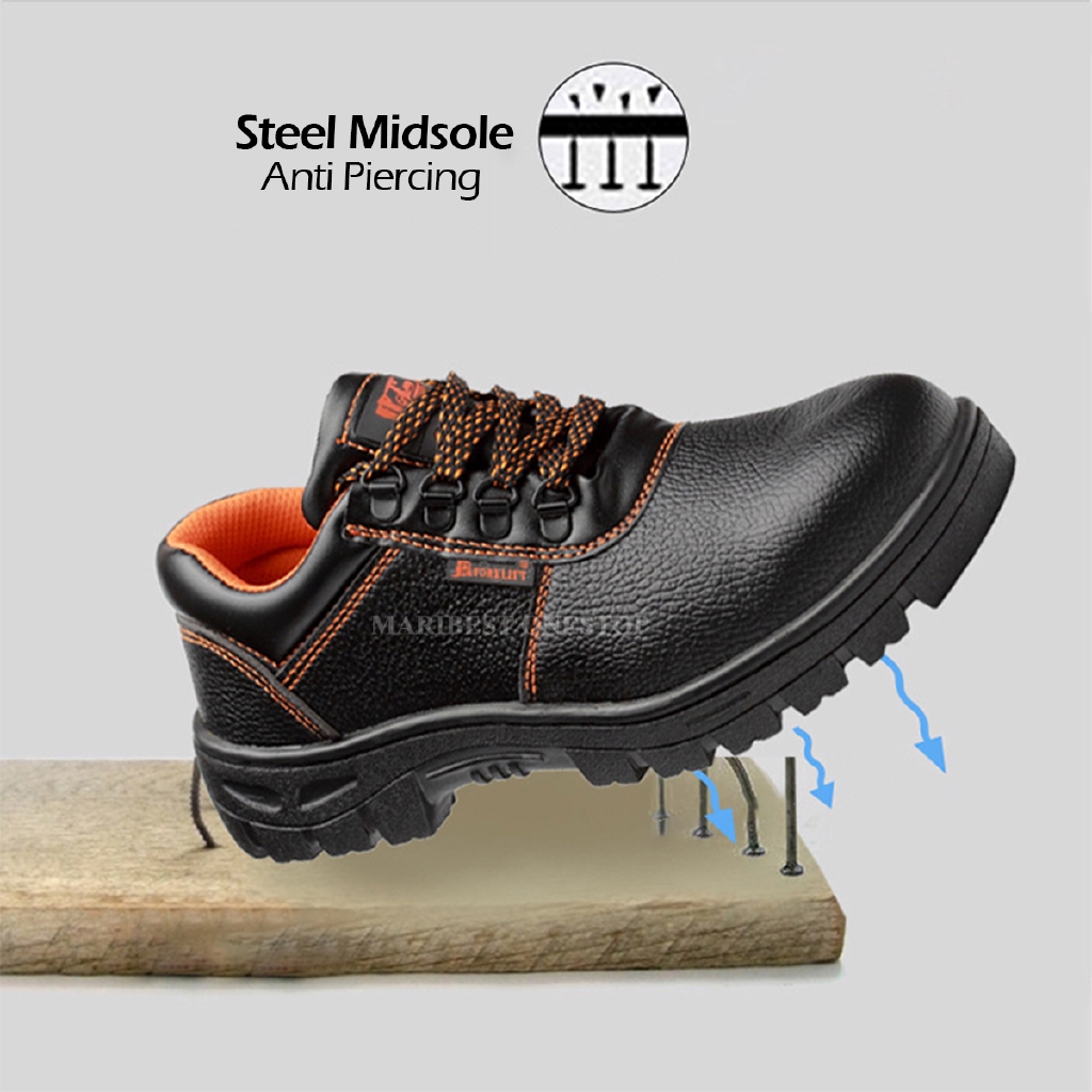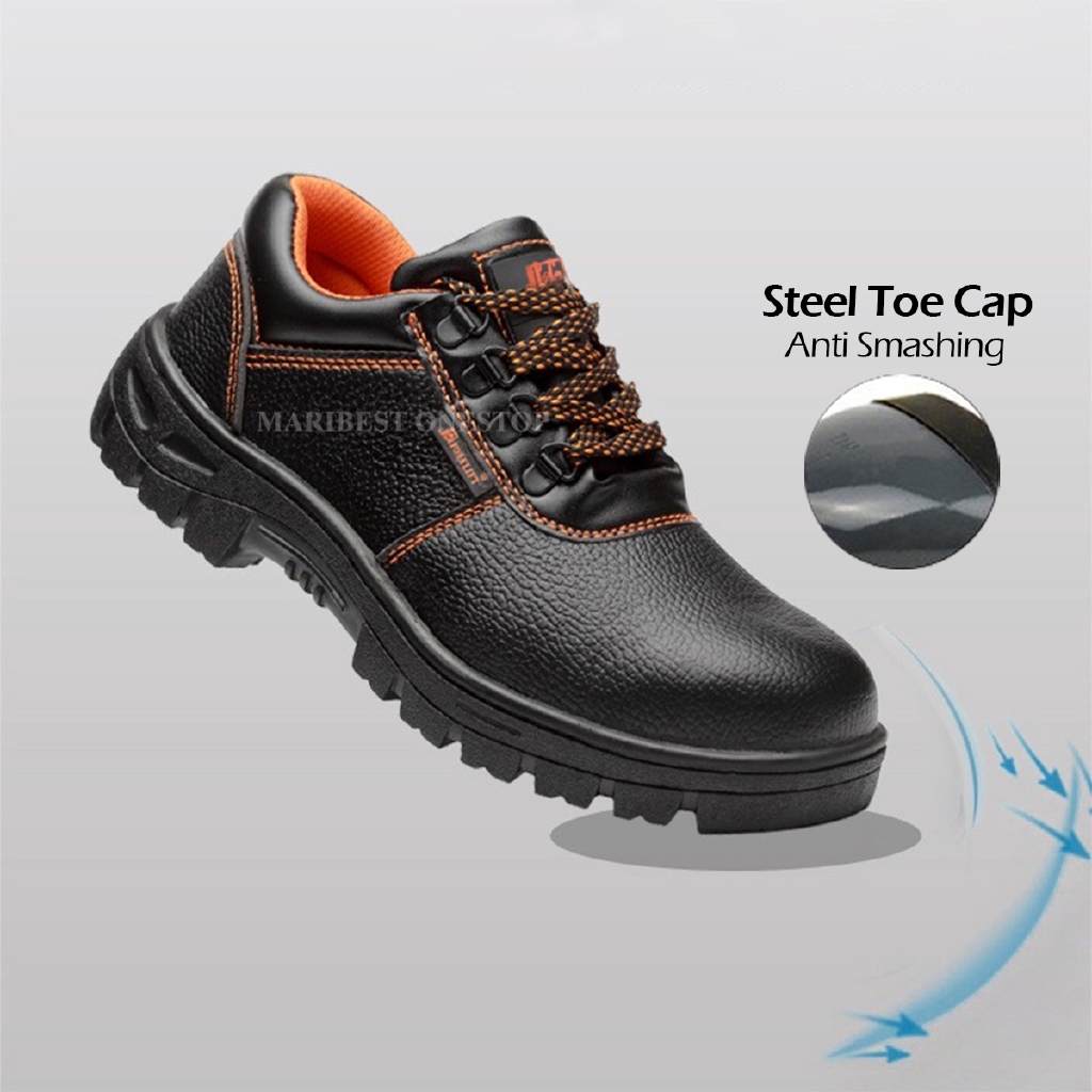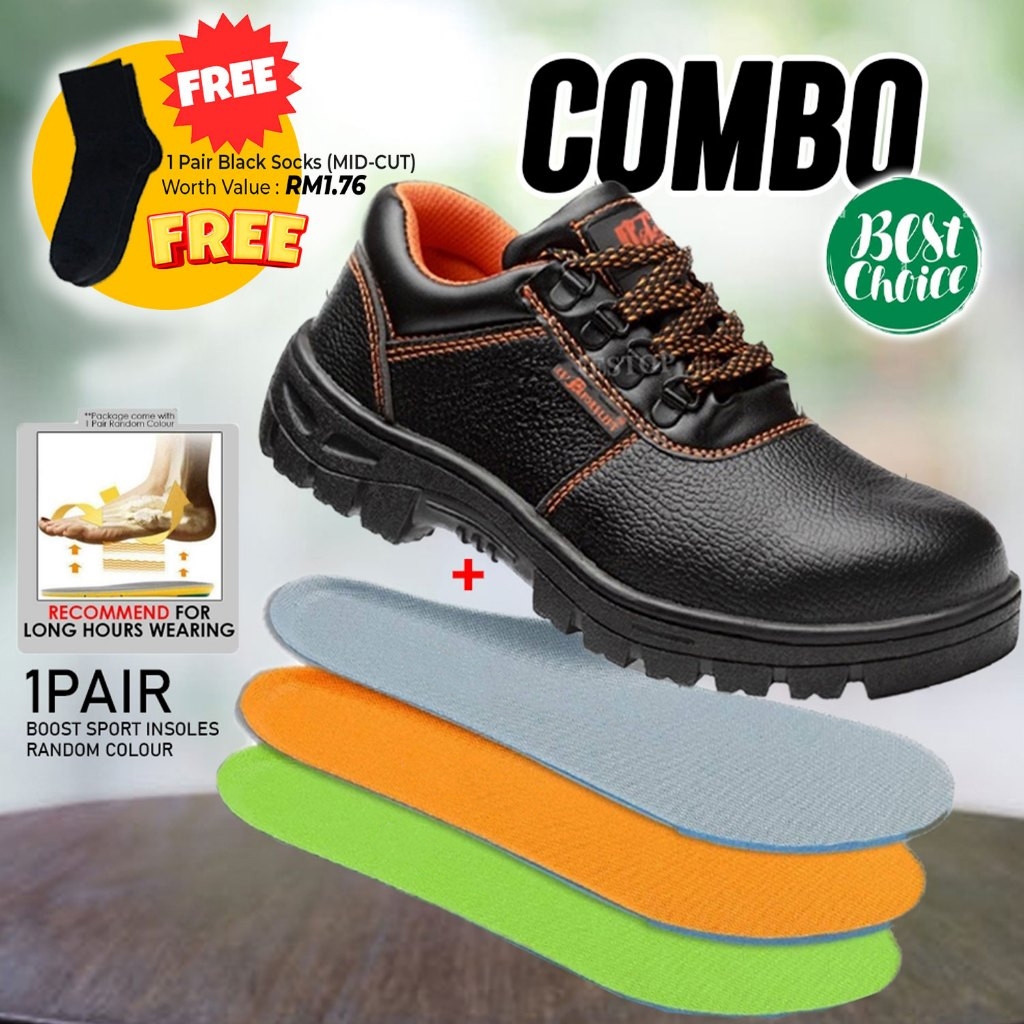 Safety Shoe Steel Toe Cap Mid Sole Low Cut Black Safety Boots Kasut Safety RANDOM RED / ORANGE LINING