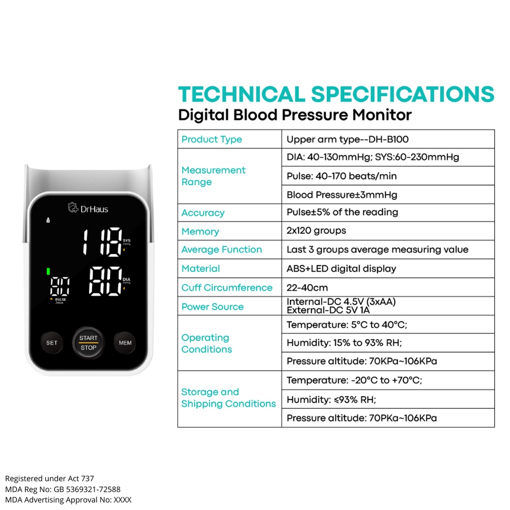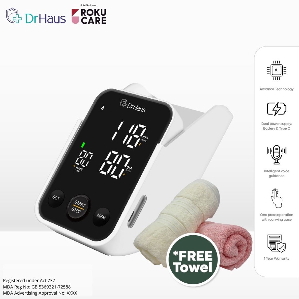 Dr Haus Intelligent Blood Pressure Monitor With Voice + FREE Luxury Hand Towel | Roku Care