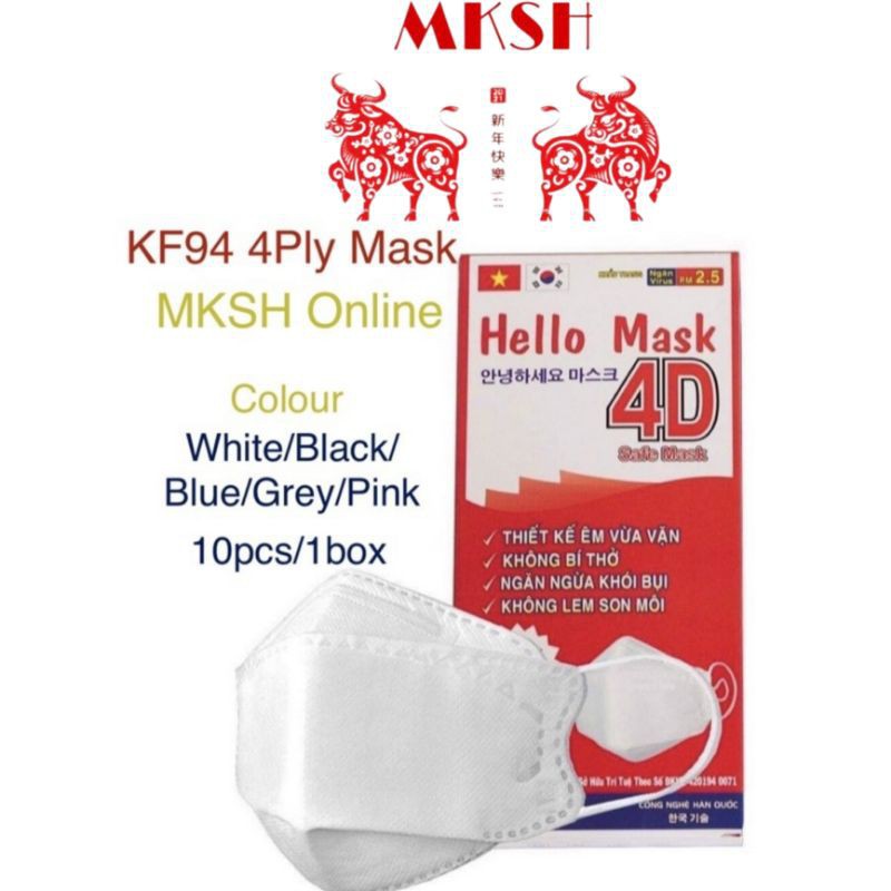 🔥Ready Stock 🔥 1 box/10pcs Reusable Hello Mask 4D KF94 Face Mask 4 Ply Hello Mask Protective Facemask Adult Size
