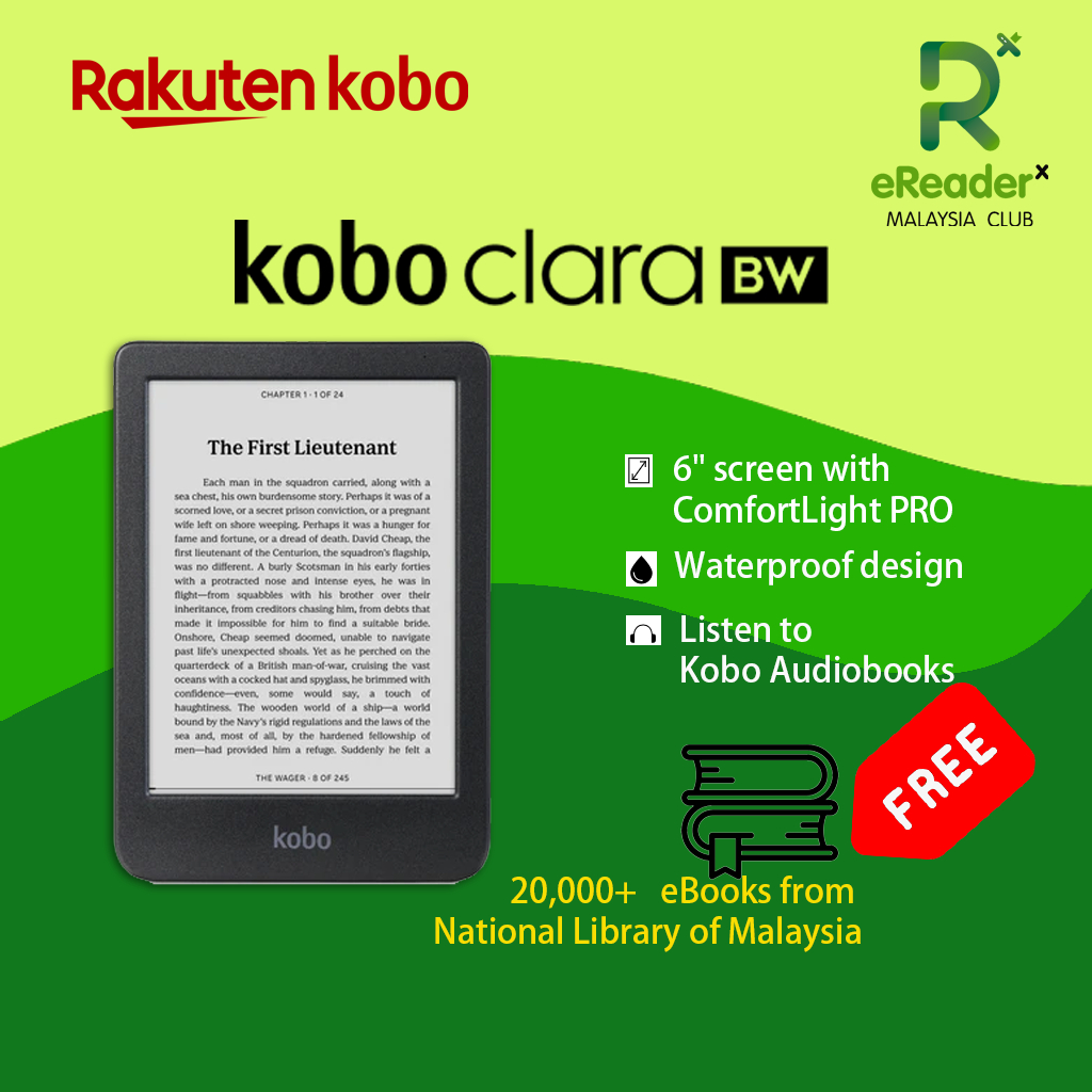 NEW Kobo Clara BW 6” glare-free E Ink Carta 1300 HD (16GB) eReader + Free 20,000 eBooks