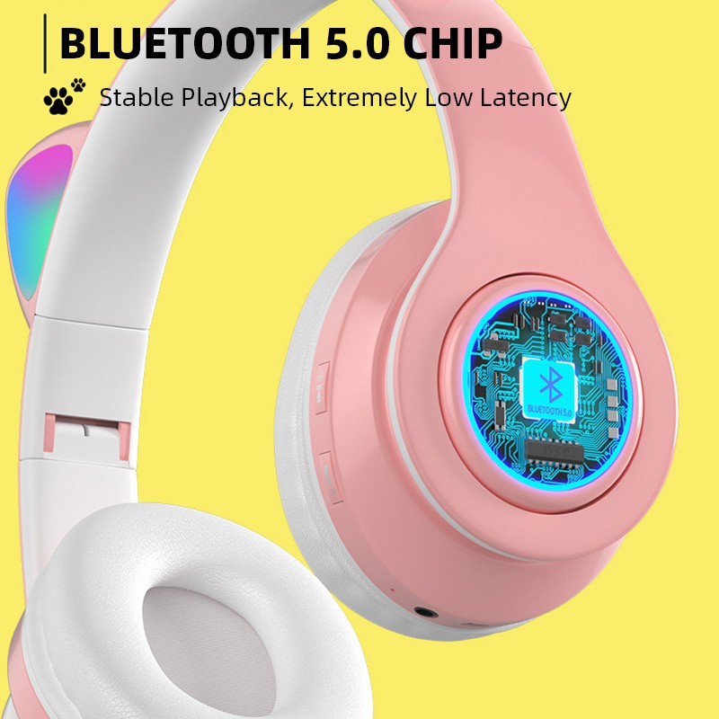 Cat Ear Bluetooth Headphone Wireless Earphone Headset Earbuds Colorful LED Bass Stereo Wireless Ove-Ear Headphones