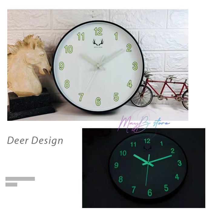 *ReadyStock* 30cm Neon Light Wall Clock Quartz Moden Reflective Luminous Clocks Silent Home Decoration Jam Dinding Rumah