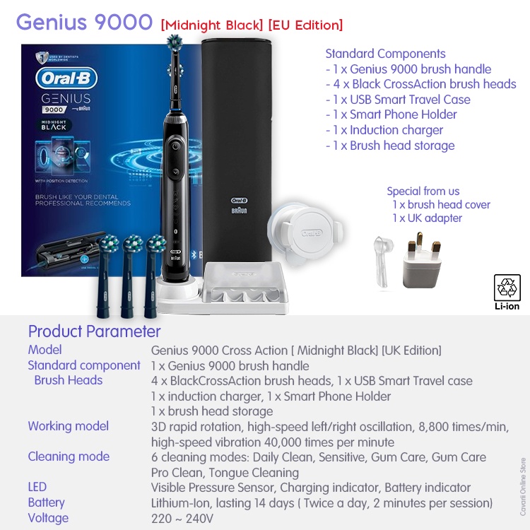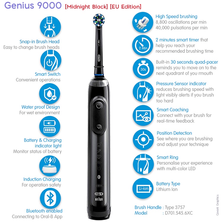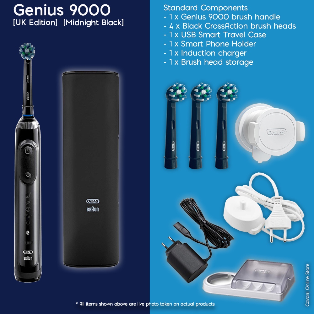 Oral-B Genius 9000 Midnight Black Electric Bluetooth Toothbrush with Pressure sensor & Smart Travel case [EU Edition]