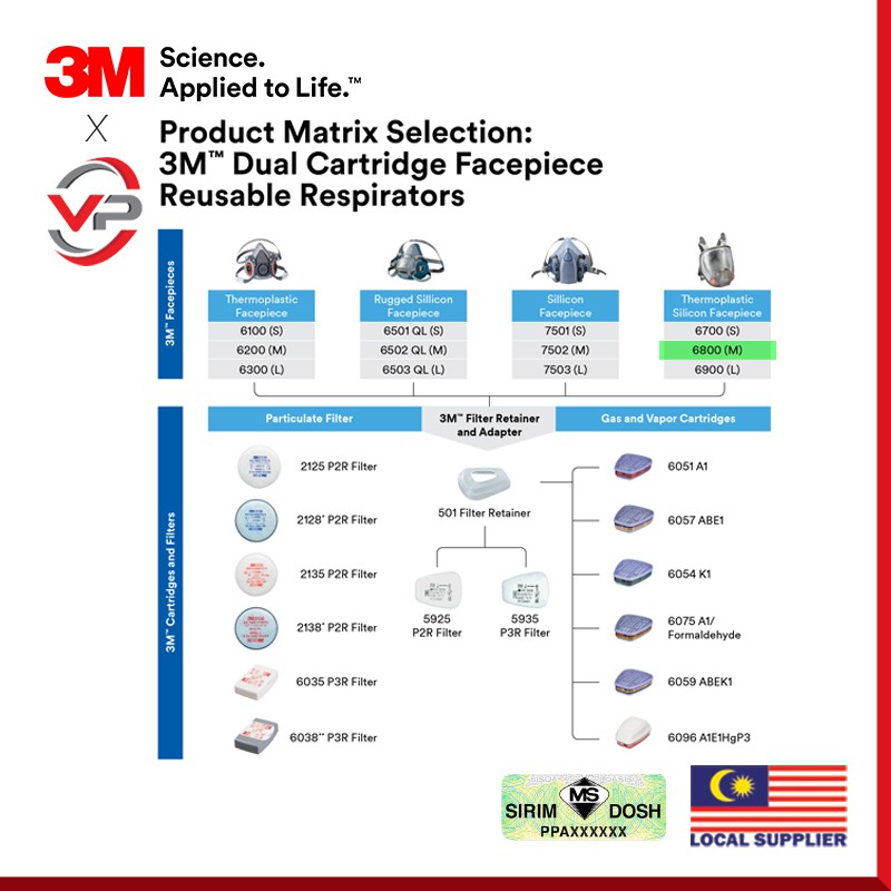 3M 6800 SIRIM-DOSH Full Face Reusable MasK Use With 6051 6057 6054 6075 6059 6096 6035 2135 2138 6038 2125 2128