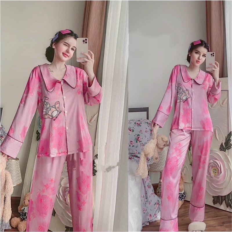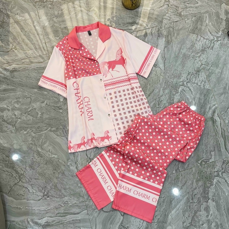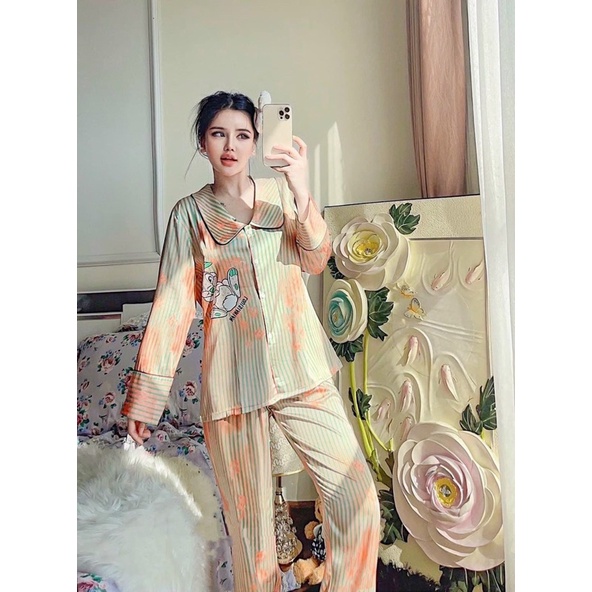 HIGH QUALITY QC SILK SATIN PIJAMA SET WITH STRIPED LOTUS NECK