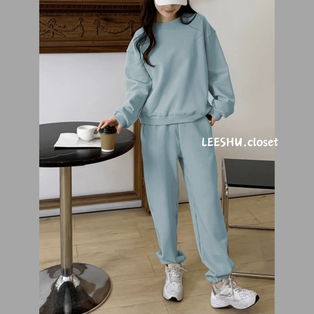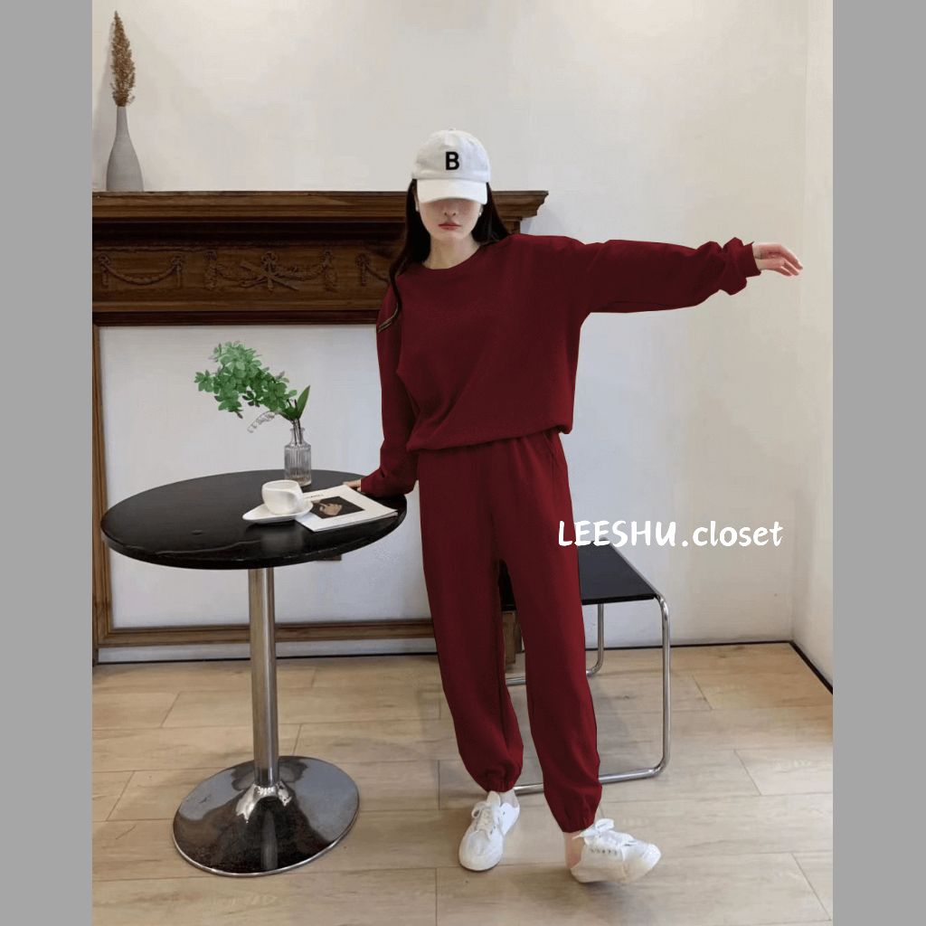 Women's autumn-winter cotton fleece set with Big size, loose form and Leeshu drawstring, super warm, soft and comfortable felt fabric B33 baju set seluar blouse korean style set ootd set